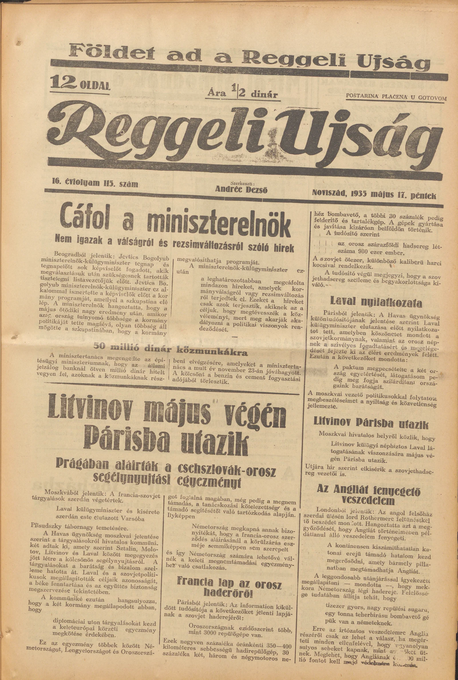 Reggeli Újság, 16. évf. 1935. május 17. 115. sz.