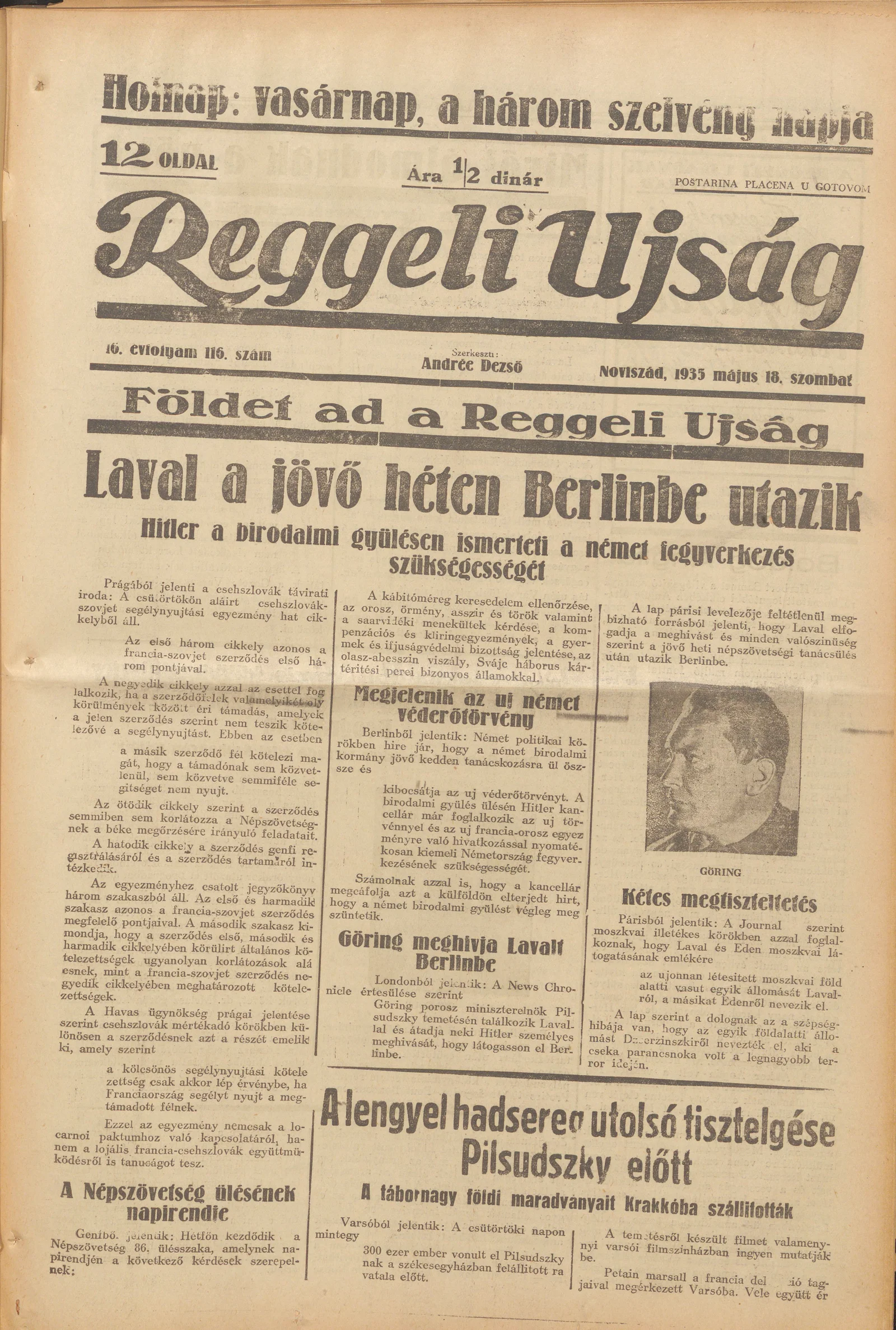 Reggeli Újság, 16. évf. 1935. május 18. 116. sz.