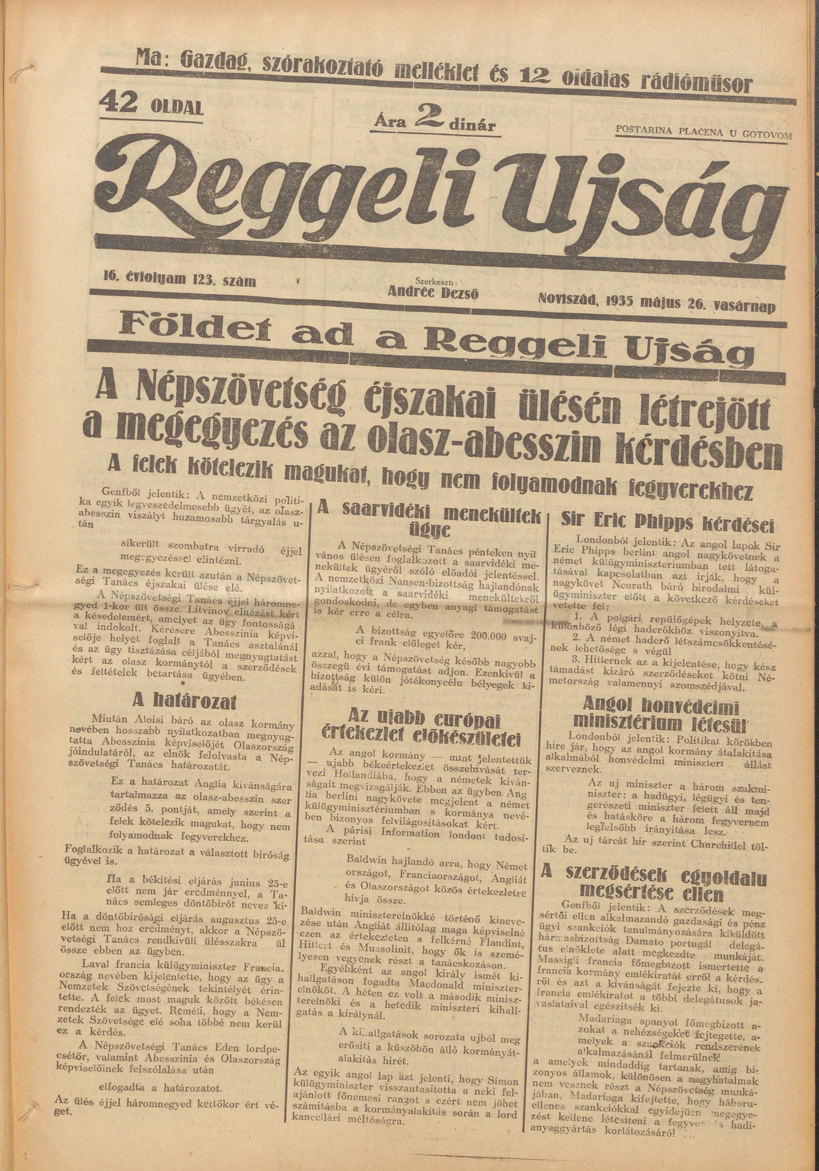 Reggeli Újság, 16. évf. 1935. május 26. 123. sz.