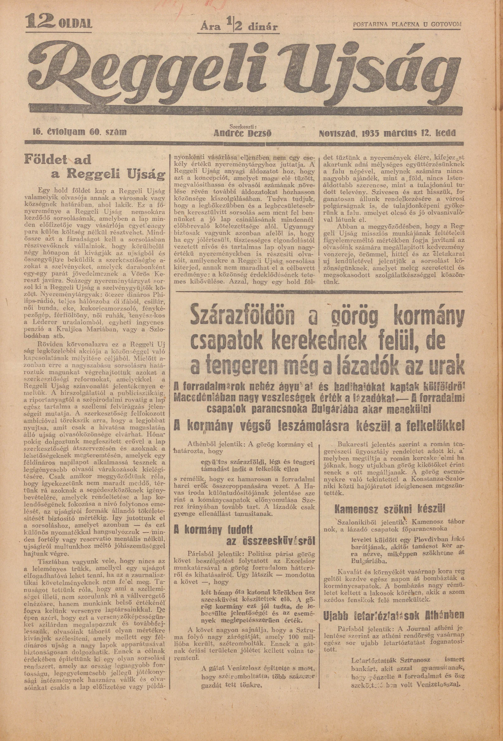 Reggeli Újság, 16. évf. 1935. március 12. 60. sz.