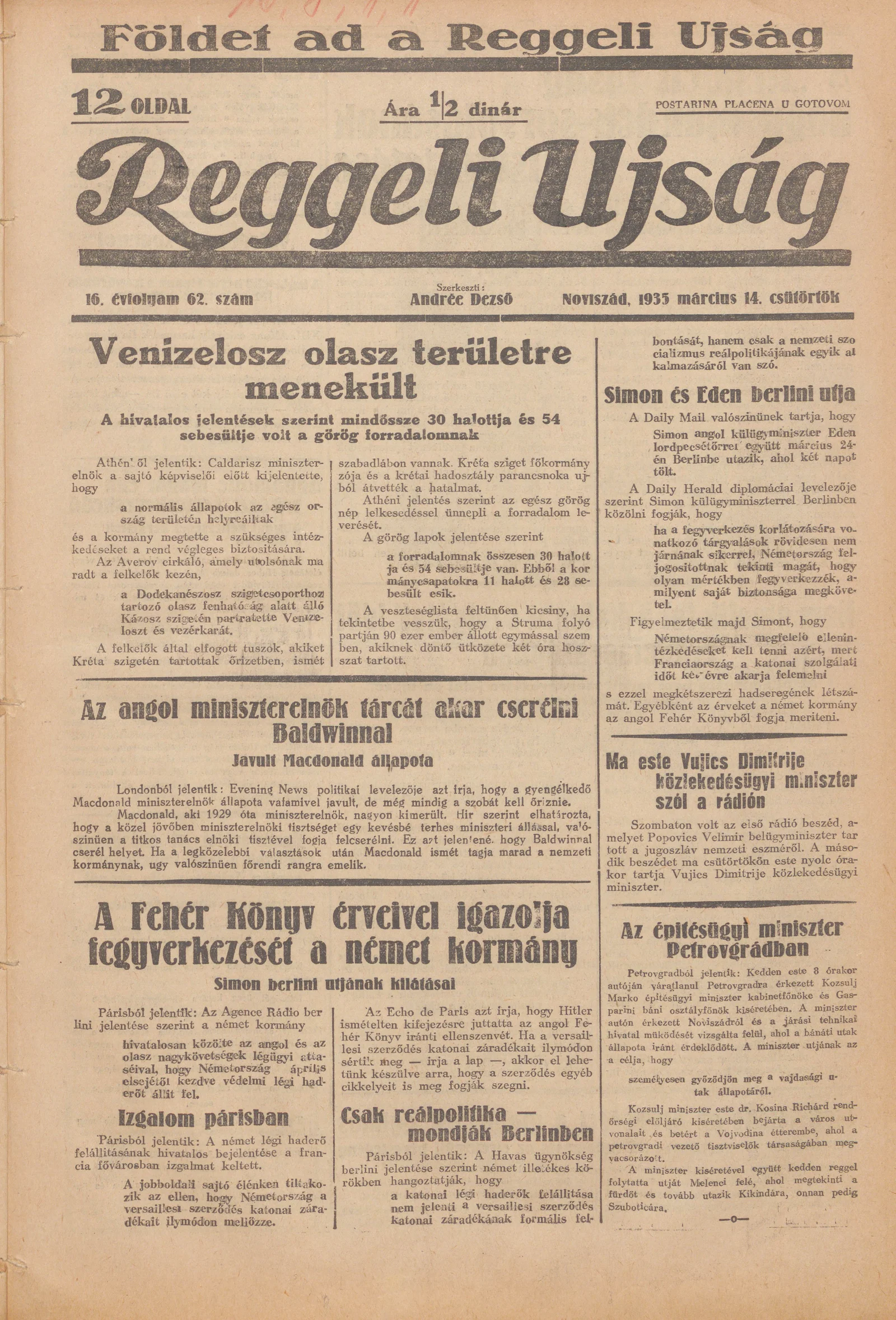 Reggeli Újság, 16. évf. 1935. március 13. 61. sz.