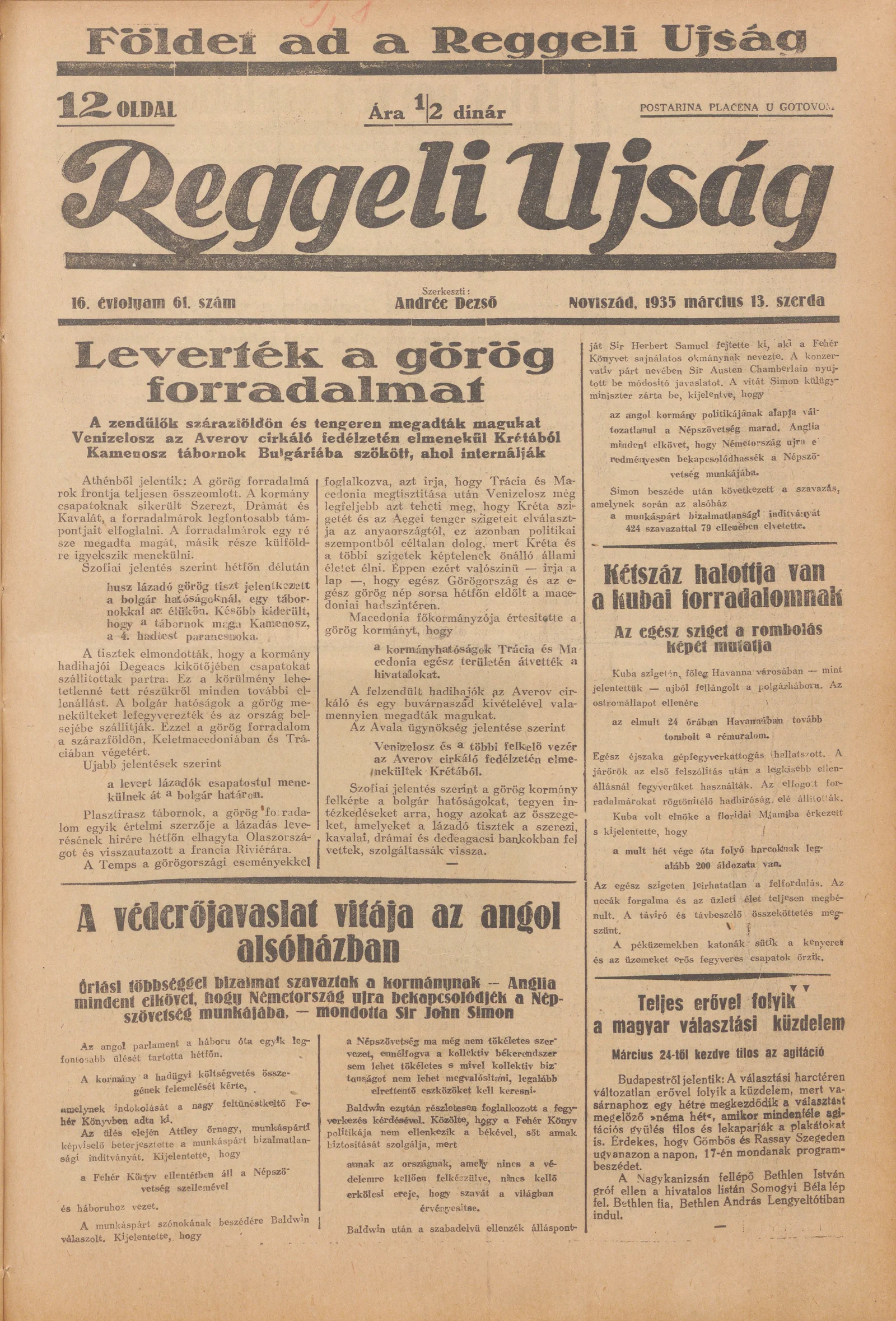 Reggeli Újság, 16. évf. 1935. március 16. 64. sz.