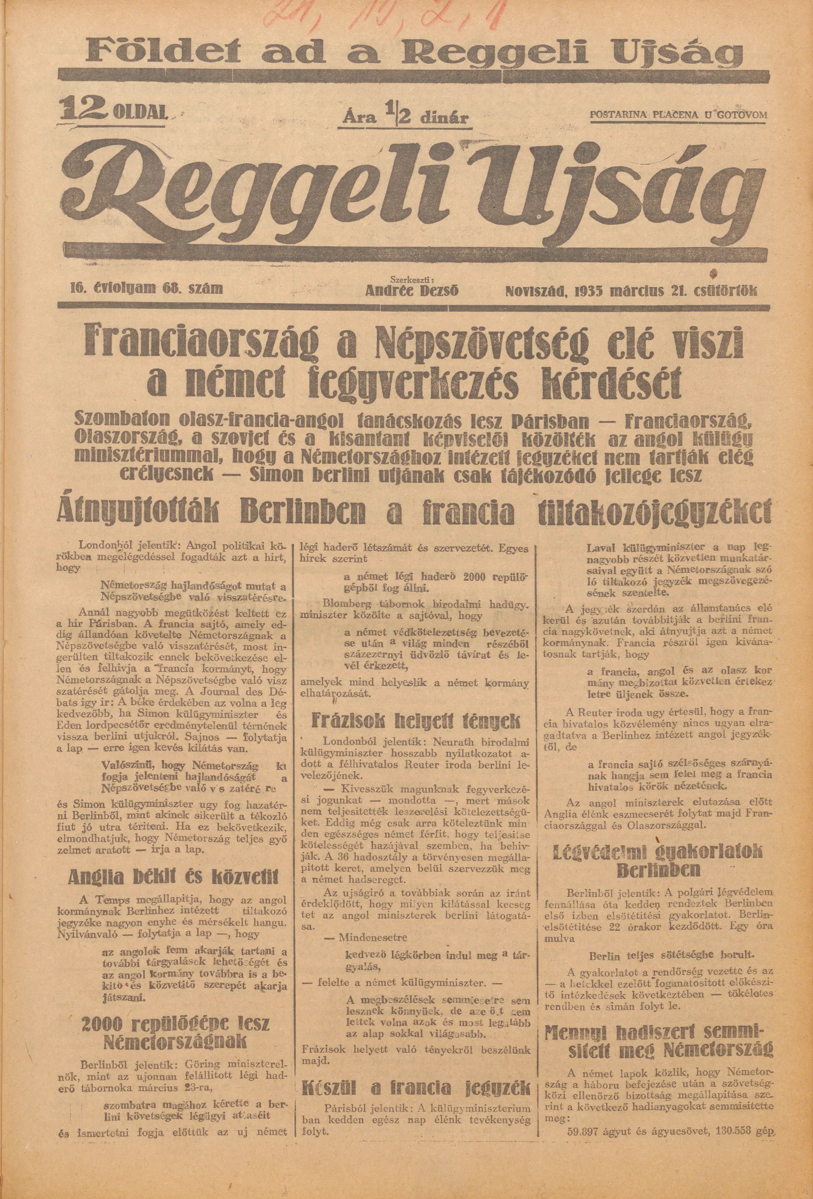 Reggeli Újság, 16. évf. 1935. március 21. 68. sz.