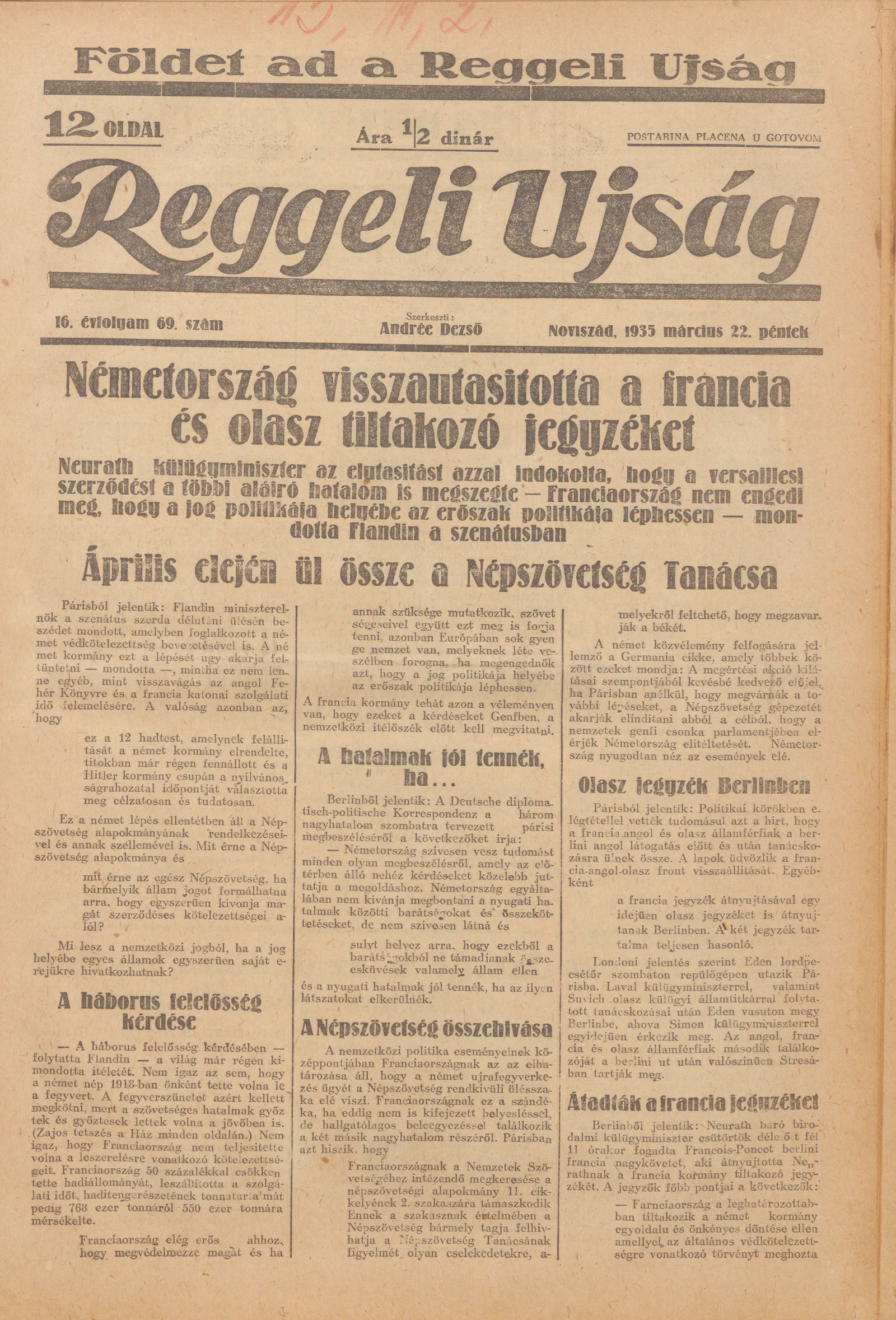Reggeli Újság, 16. évf. 1935. március 22. 69. sz.