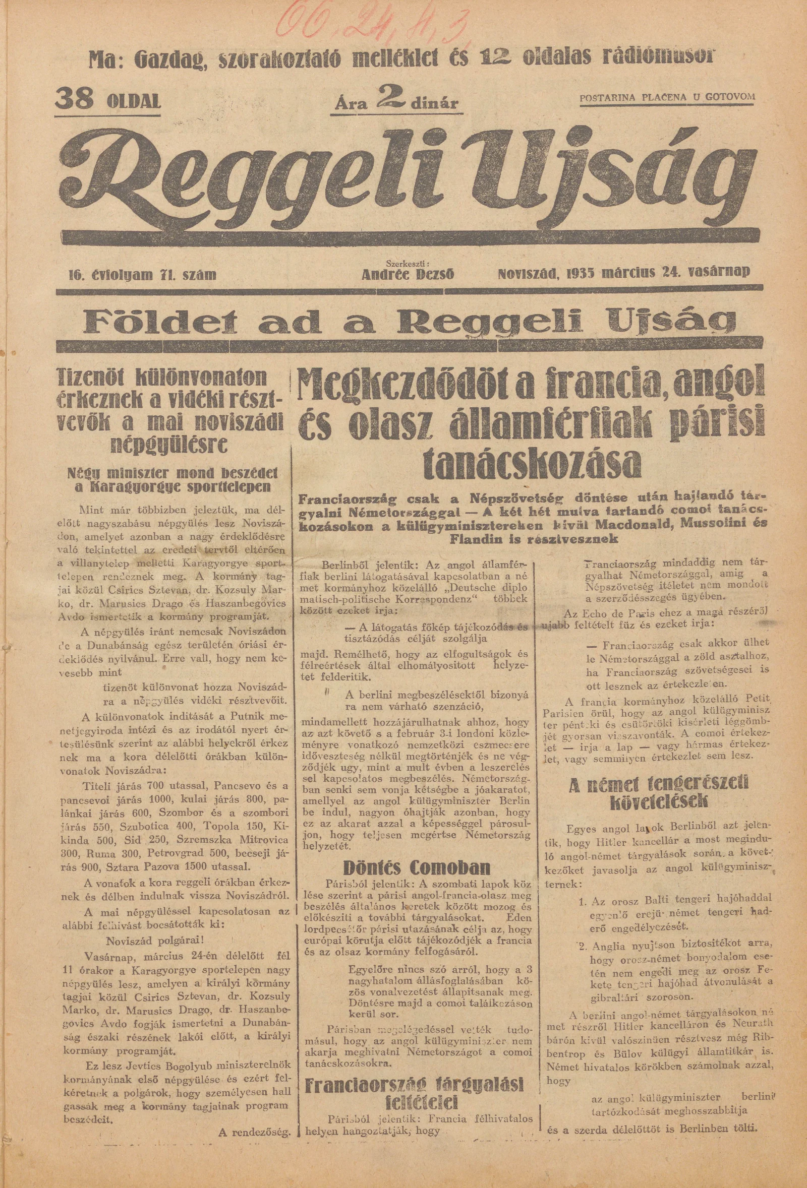 Reggeli Újság, 16. évf. 1935. március 24. 71. sz.