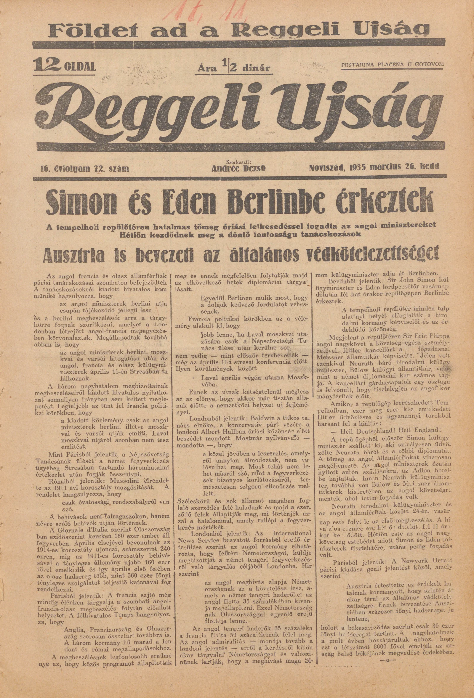 Reggeli Újság, 16. évf. 1935. március 26. 72. sz.