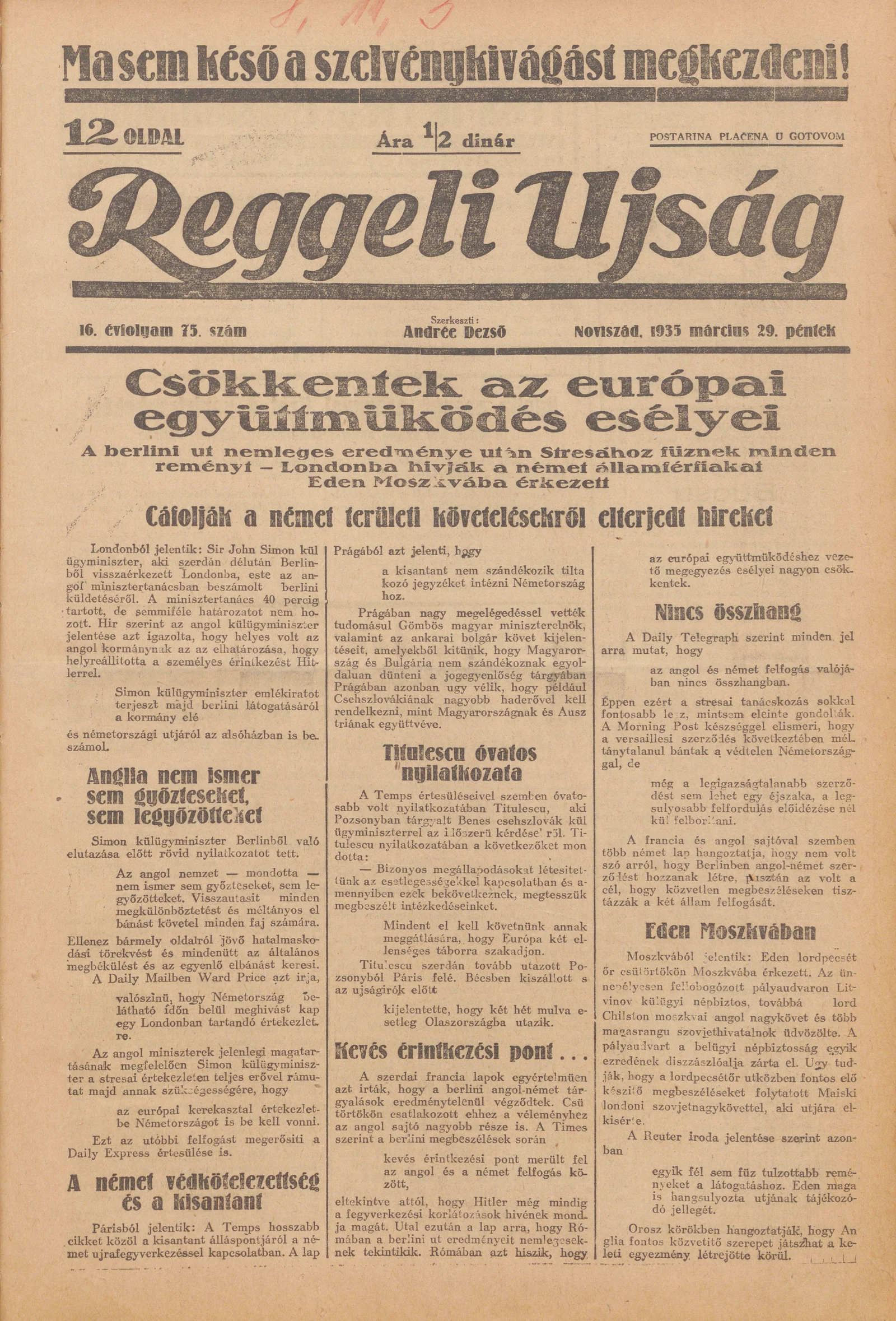 Reggeli Újság, 16. évf. 1935. március 29. 75. sz.