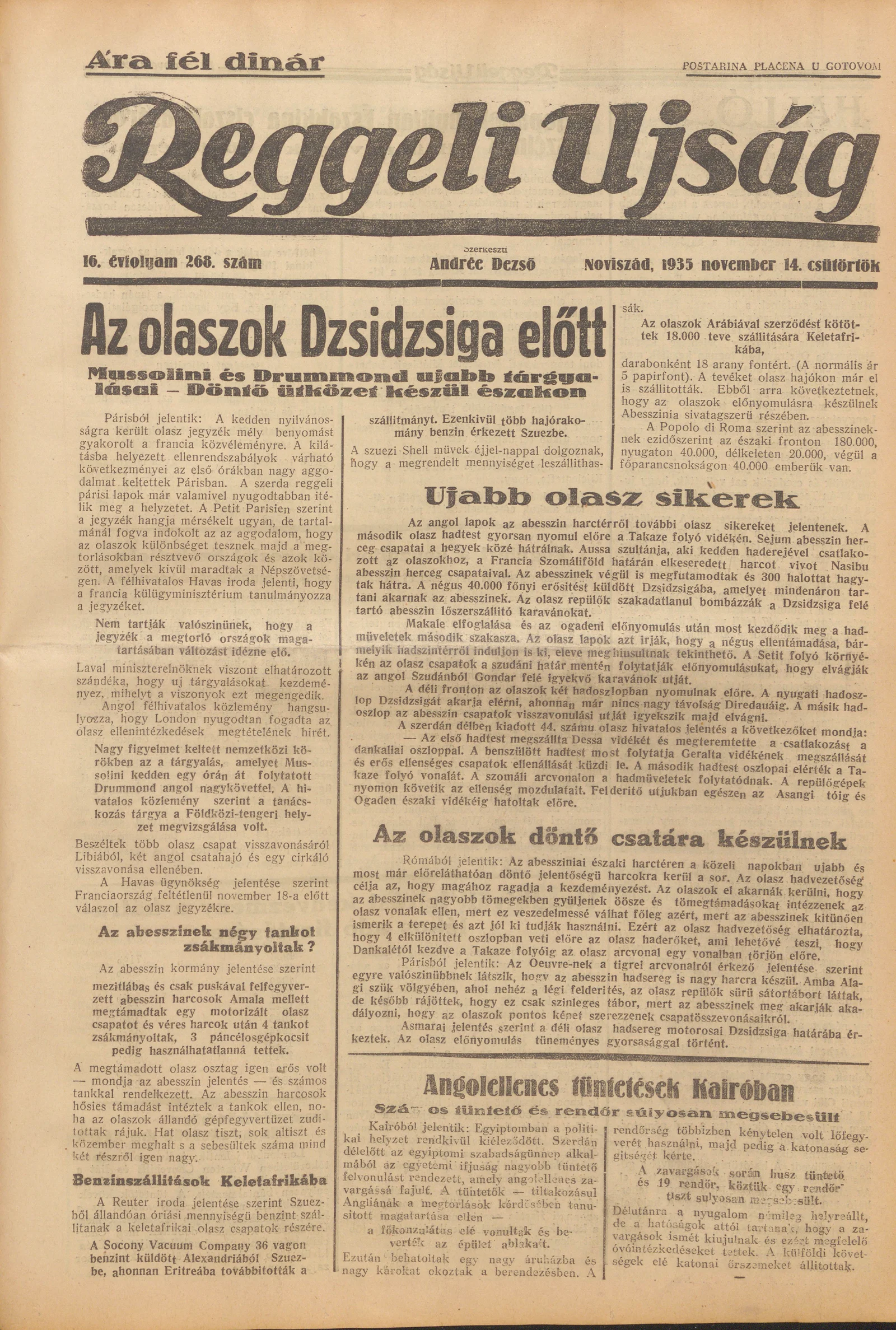 Reggeli Újság, 16. évf. 1935. november 14. 268. sz.