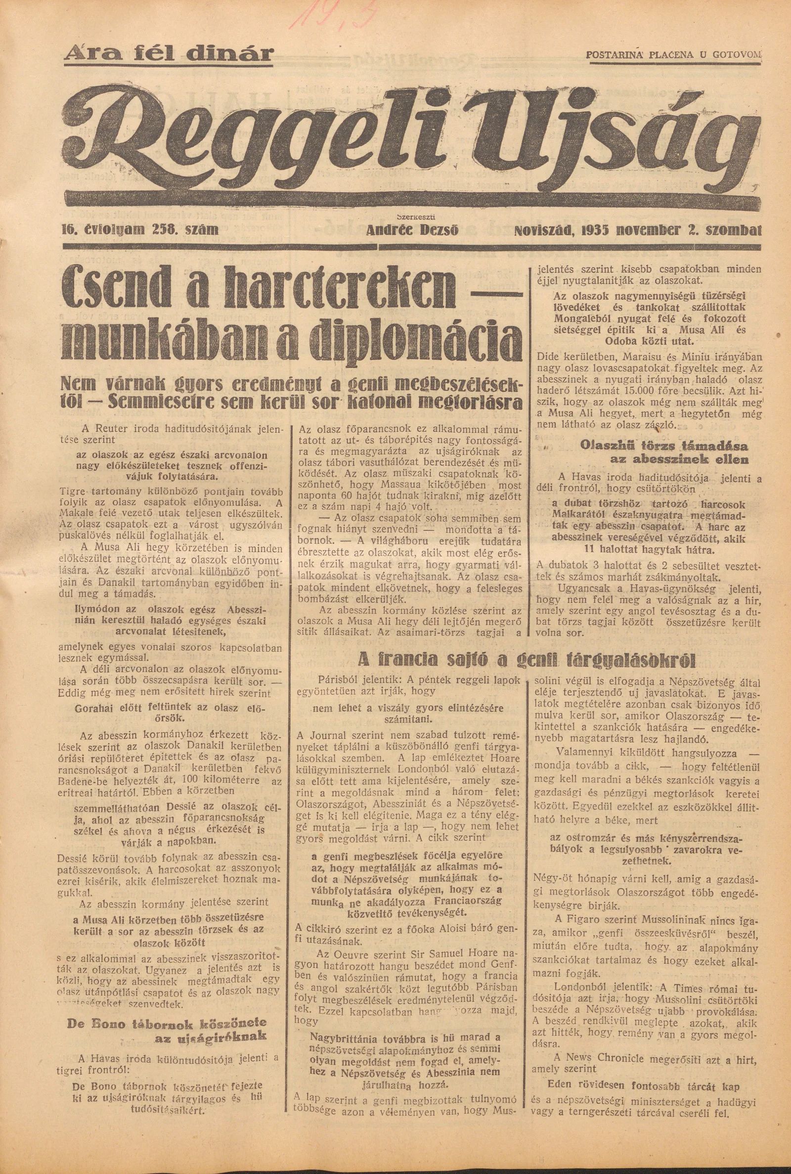 Reggeli Újság, 16. évf. 1935. november 2. 258. sz.