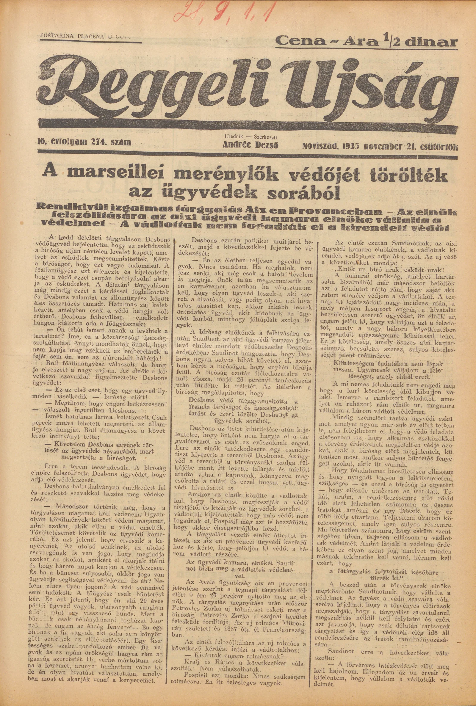 Reggeli Újság, 16. évf. 1935. november 21. 274. sz.