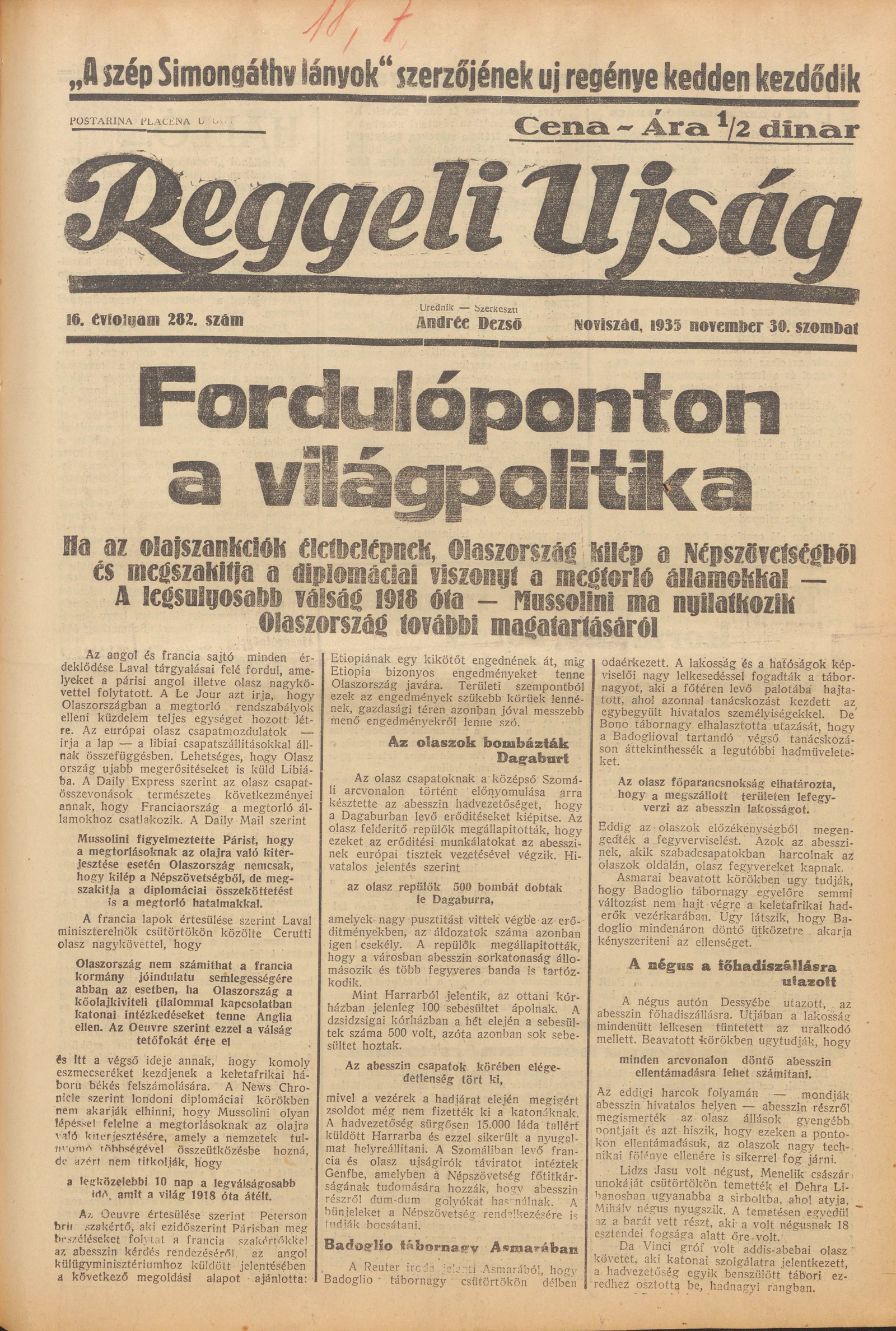 Reggeli Újság, 16. évf. 1935. november 30. 282. sz.