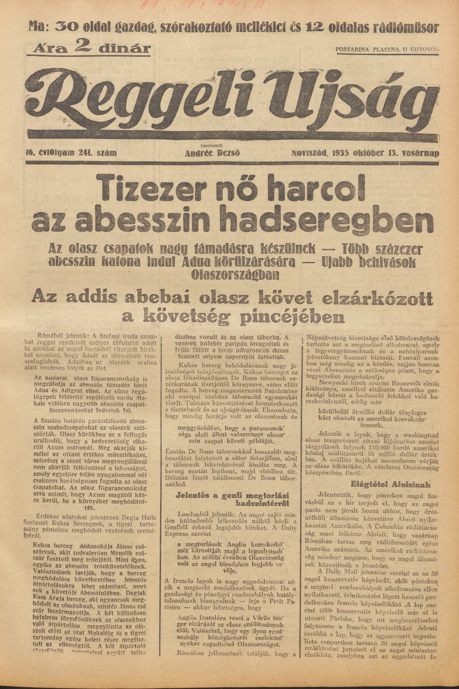 Reggeli Újság, 16. évf. 1935. október 13. 241. sz.