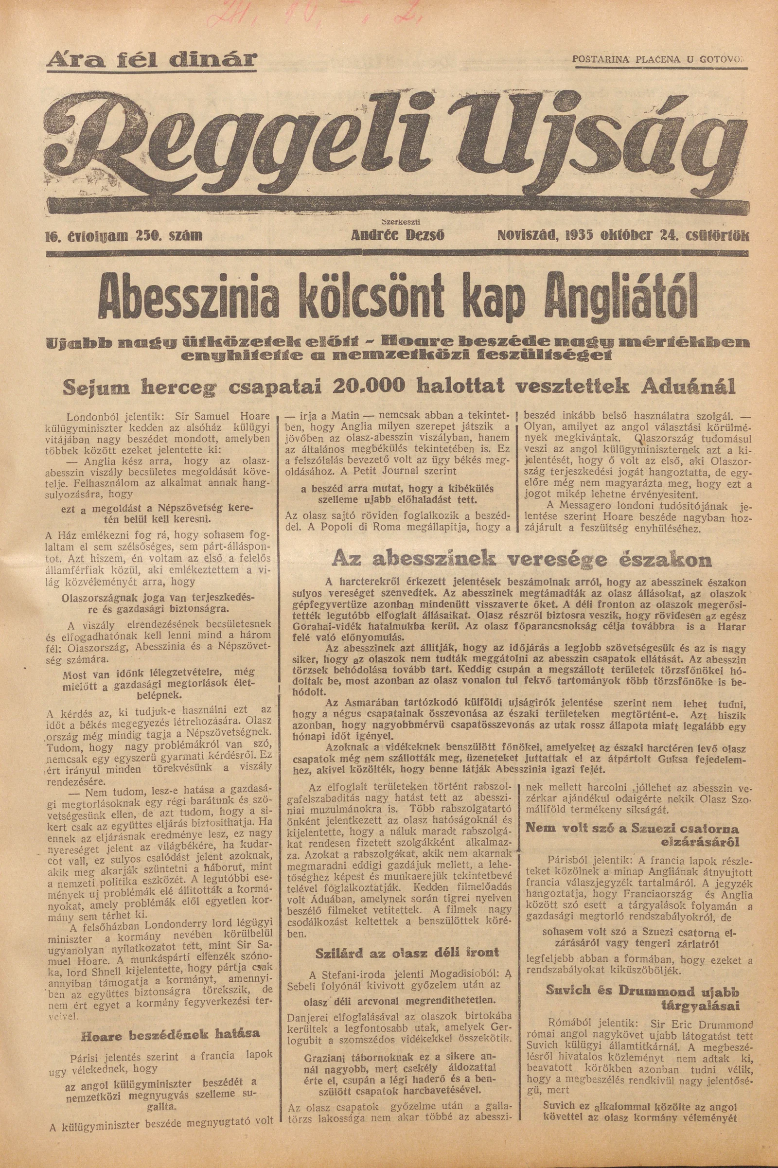 Reggeli Újság, 16. évf. 1935. október 24. 250. sz.