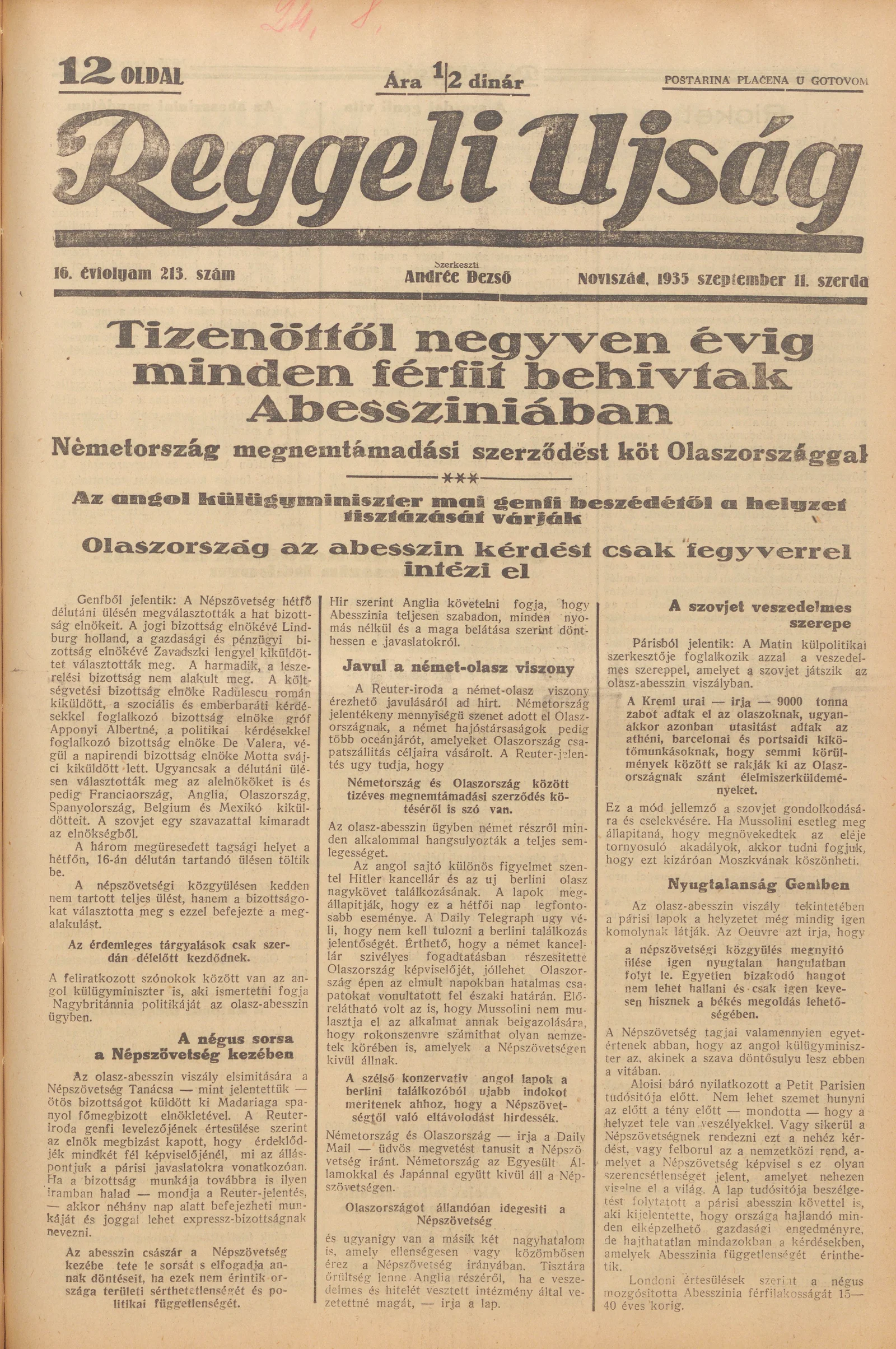 Reggeli Újság, 16. évf. 1935. szeptember 11. 213. sz.