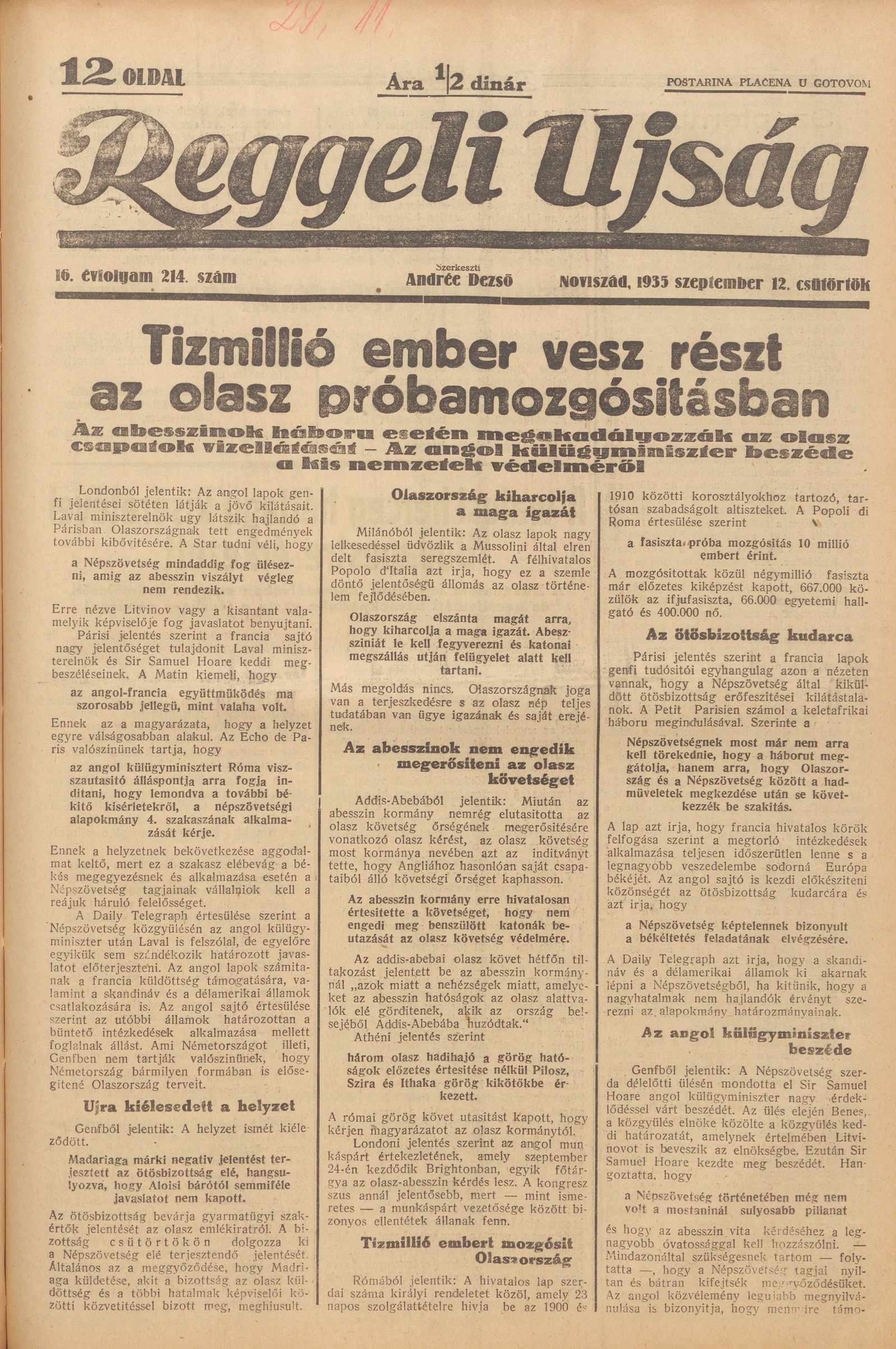 Reggeli Újság, 16. évf. 1935. szeptember 12. 214. sz.