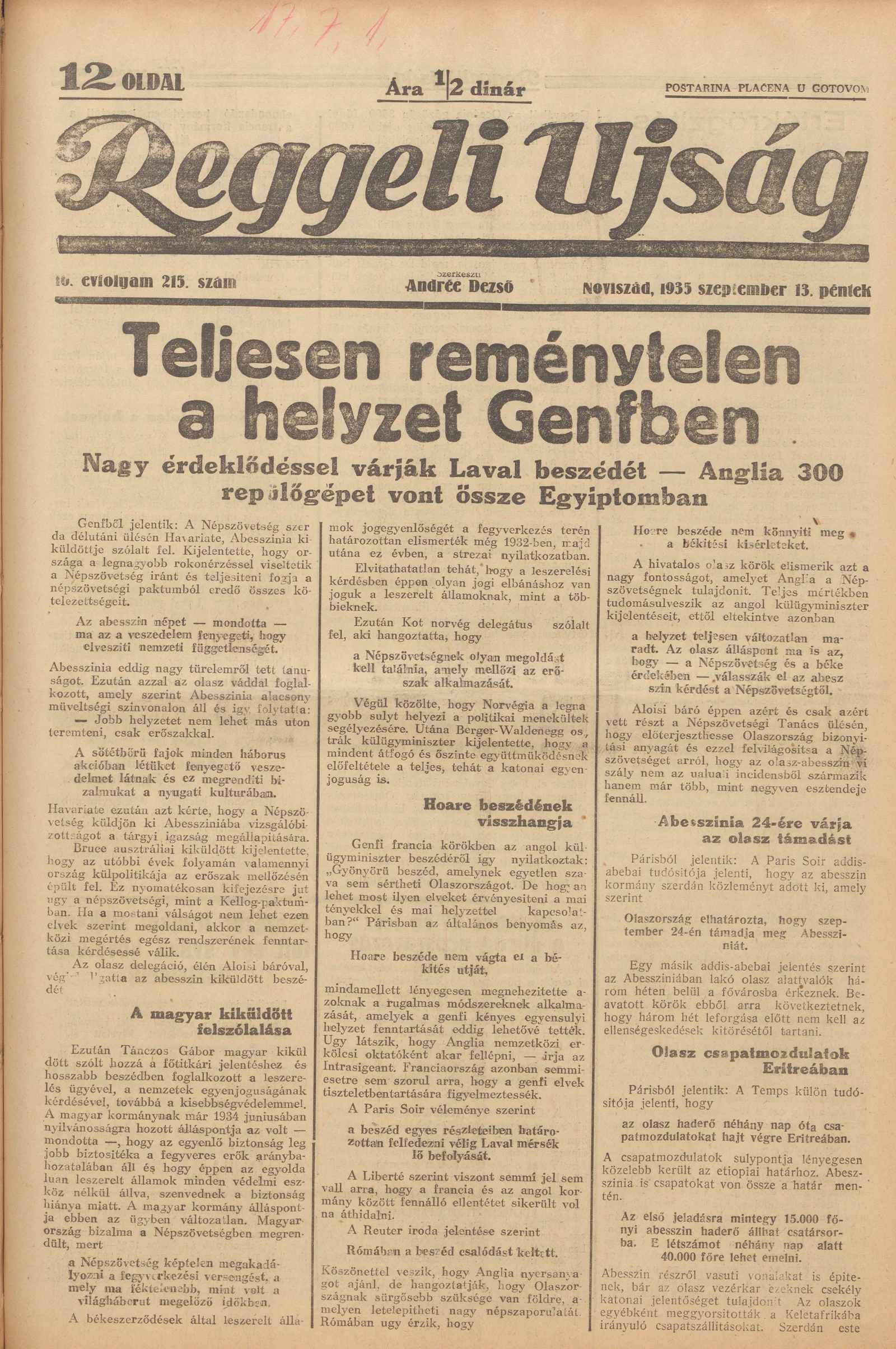 Reggeli Újság, 16. évf. 1935. szeptember 13. 215. sz.