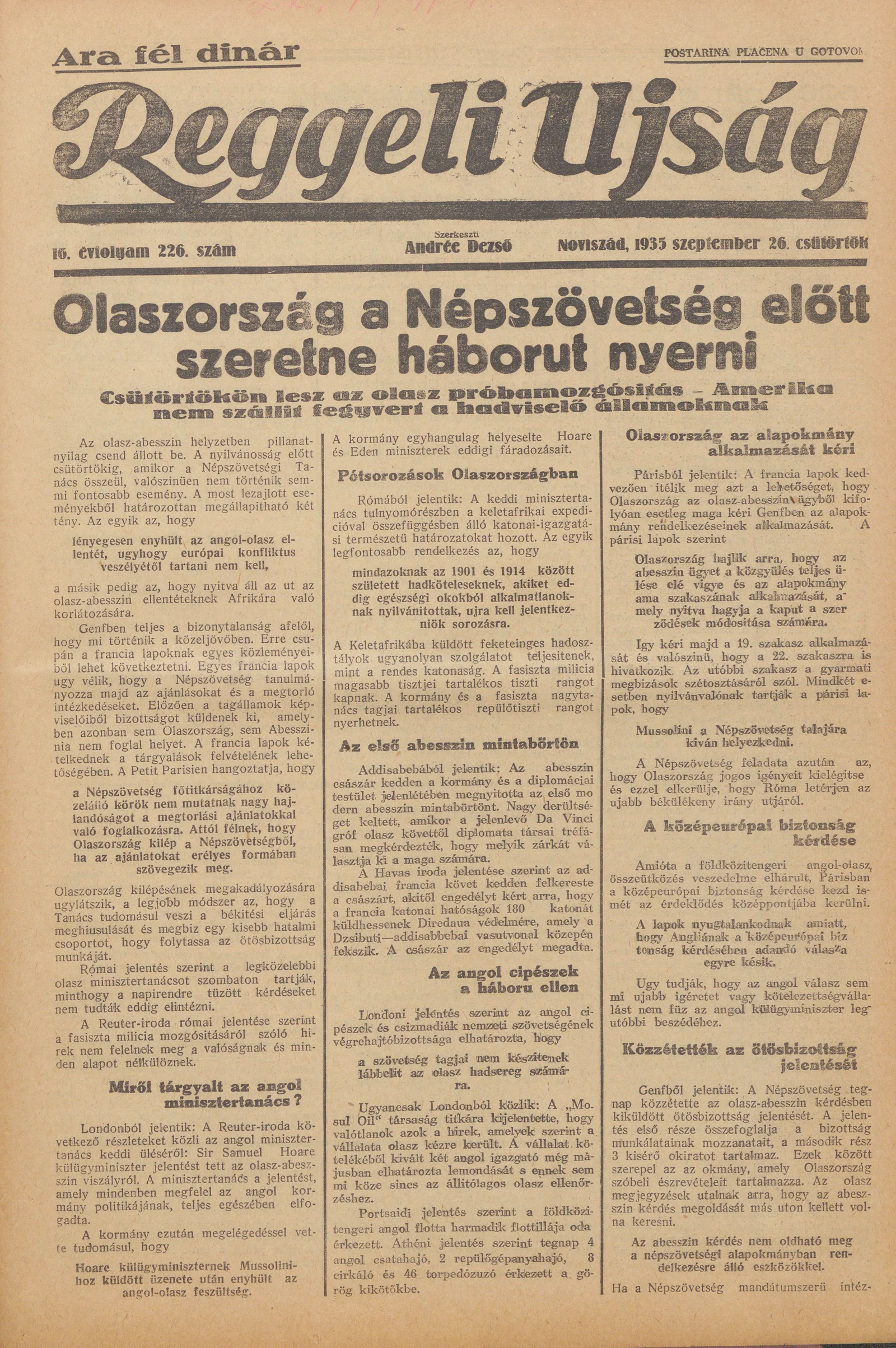 Reggeli Újság, 16. évf. 1935. szeptember 26. 226. sz.