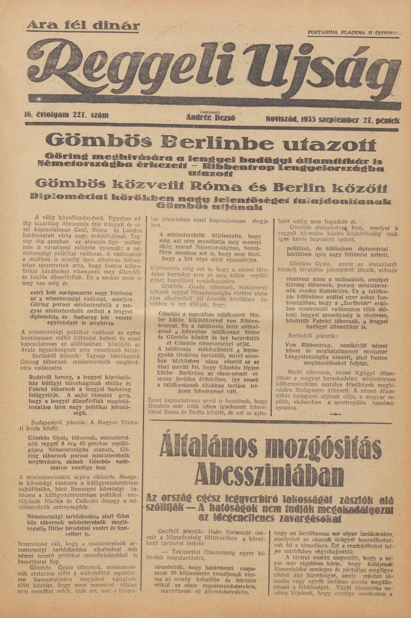 Reggeli Újság, 16. évf. 1935. szeptember 27. 227. sz.