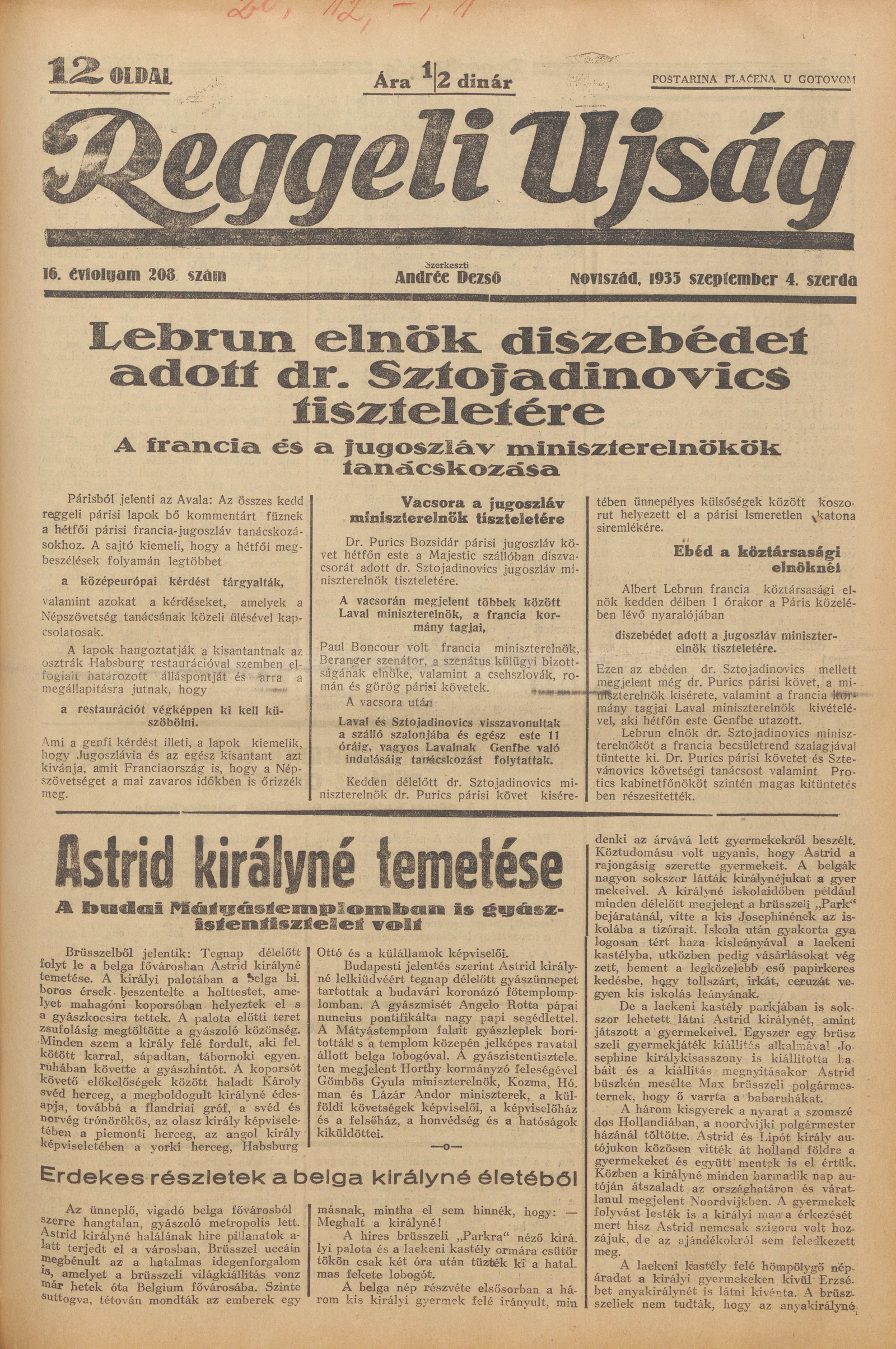 Reggeli Újság, 16. évf. 1935. szeptember 4. 208. sz.