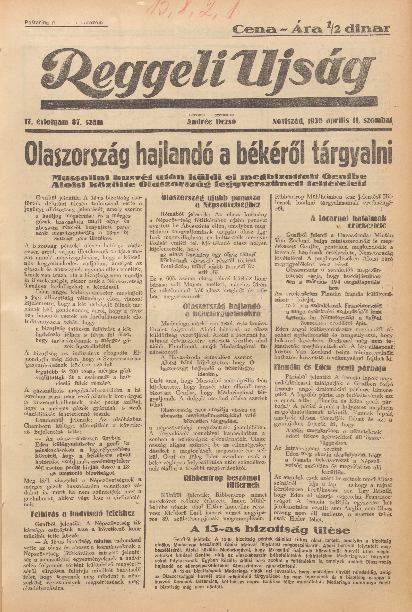Reggeli Újság, 17. évf. 1936. április 11. 87. sz.