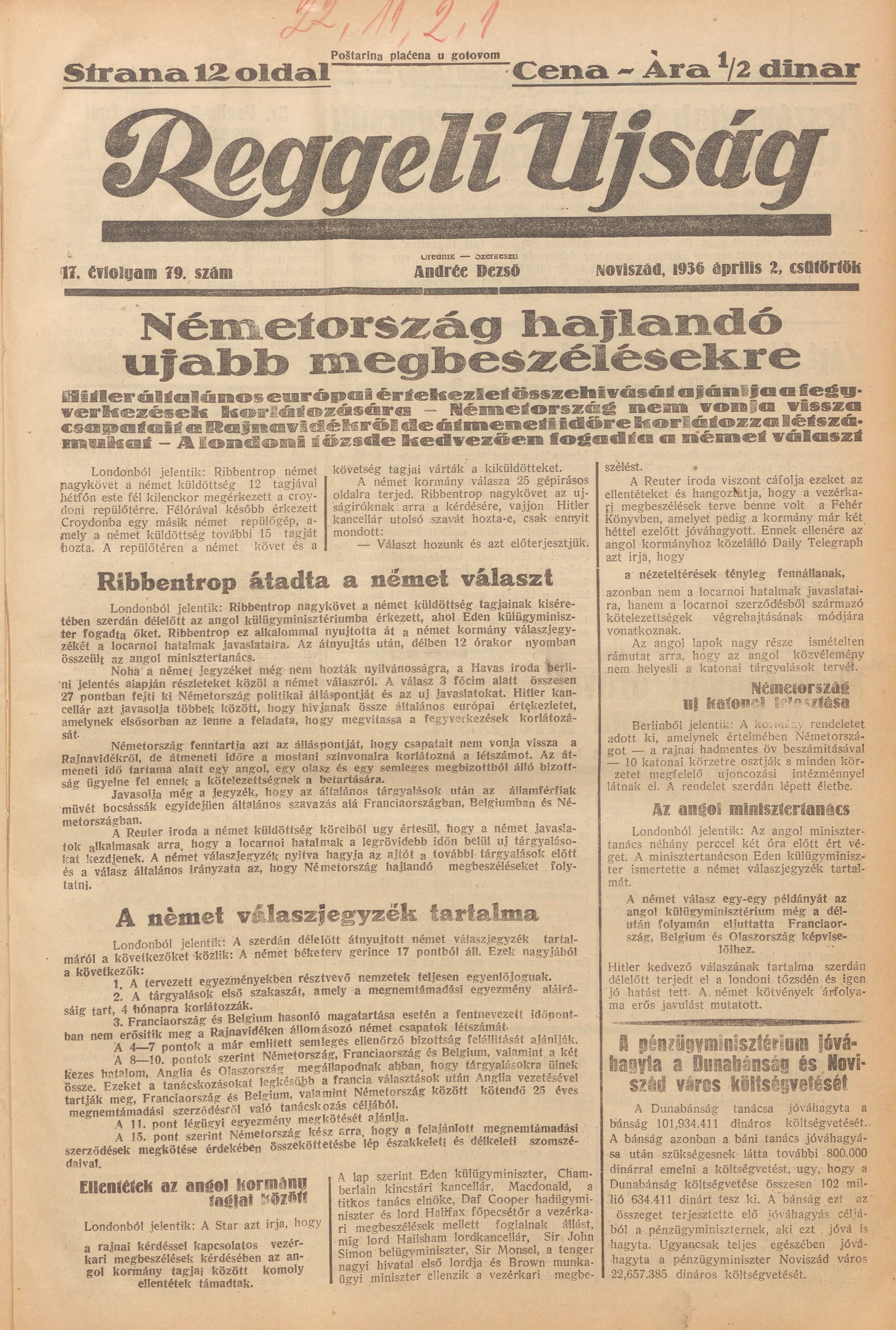 Reggeli Újság, 17. évf. 1936. április 2. 79. sz.