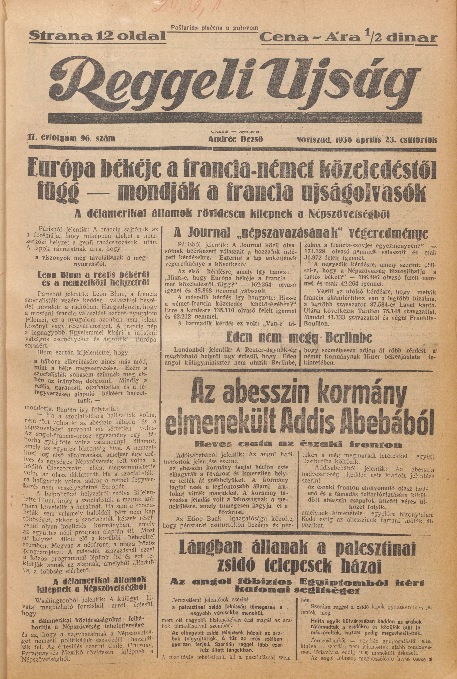Reggeli Újság, 17. évf. 1936. április 23. 96. sz.