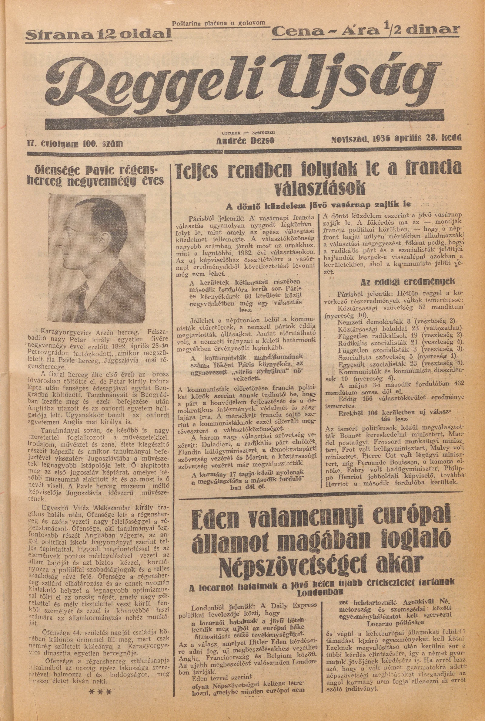 Reggeli Újság, 17. évf. 1936. április 28. 100. sz.