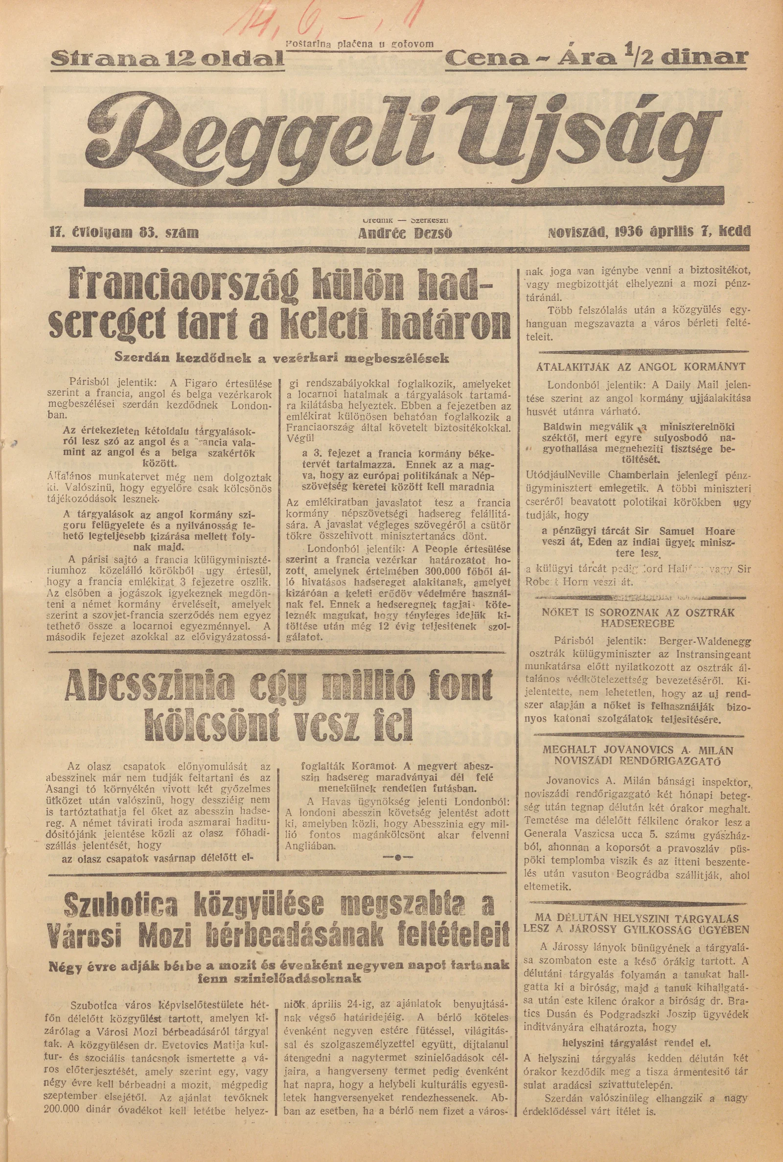 Reggeli Újság, 17. évf. 1936. április 7. 83. sz.