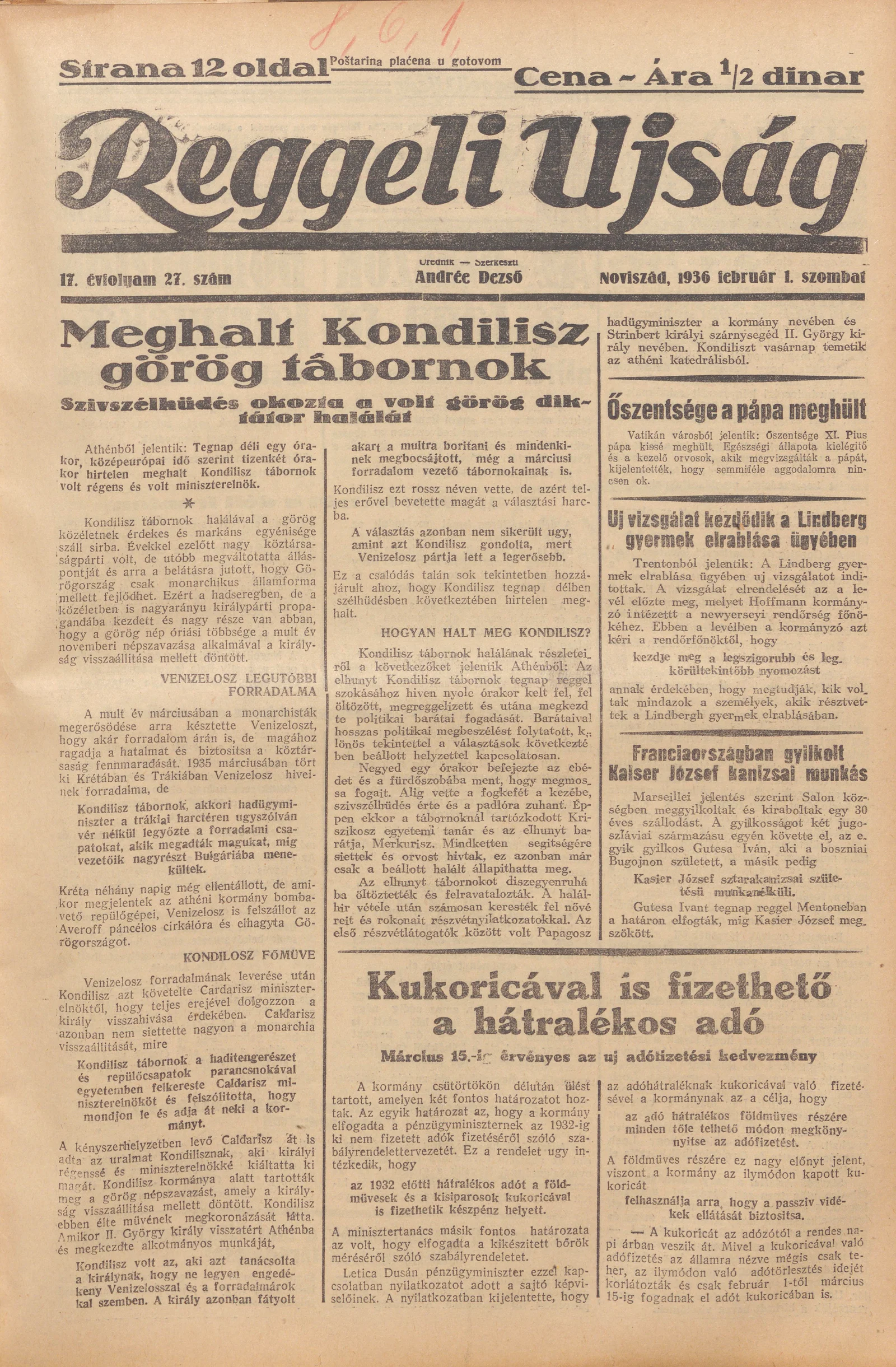 Reggeli Újság, 17. évf. 1936. február 1. 27. sz.