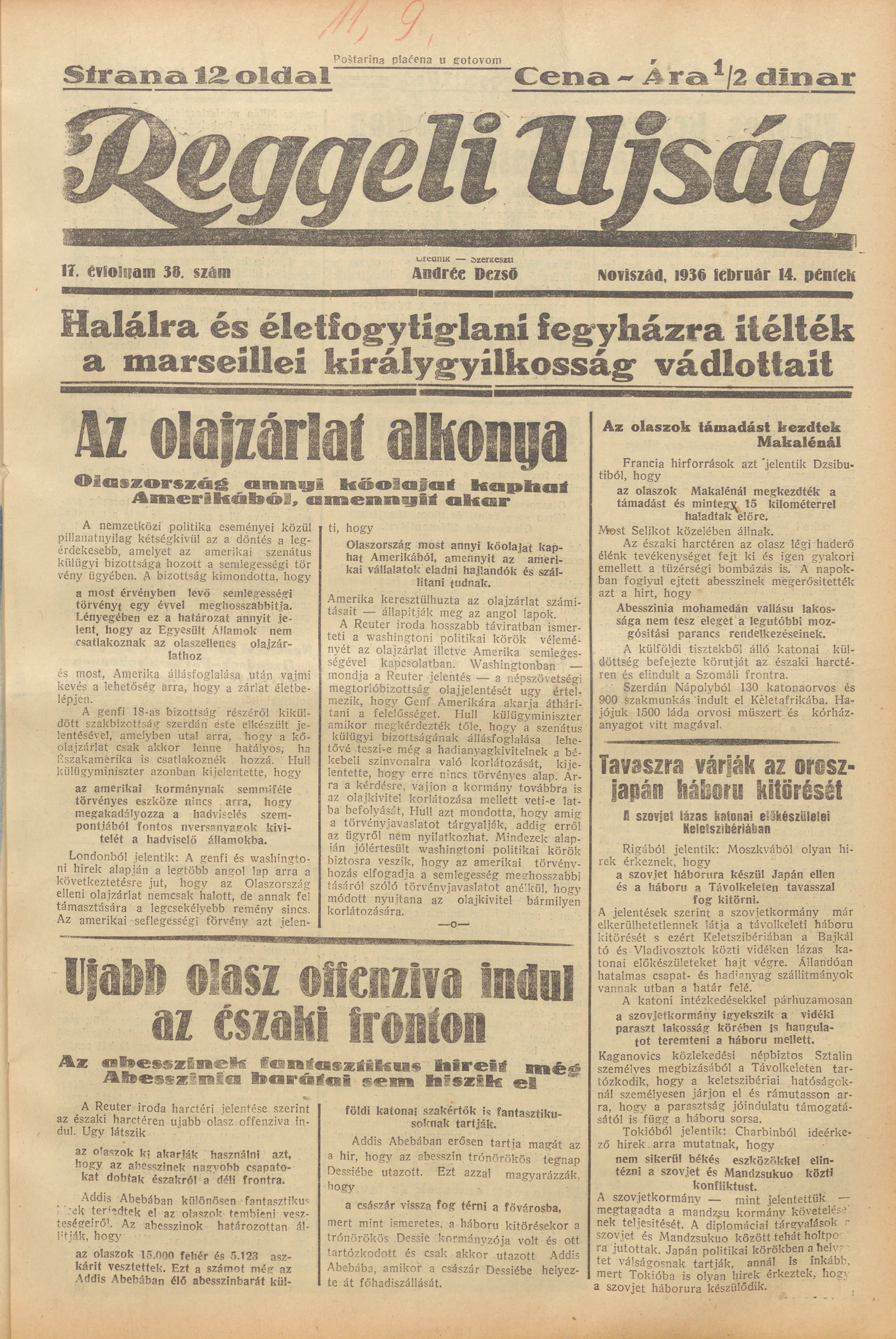 Reggeli Újság, 17. évf. 1936. február 14. 38. sz.