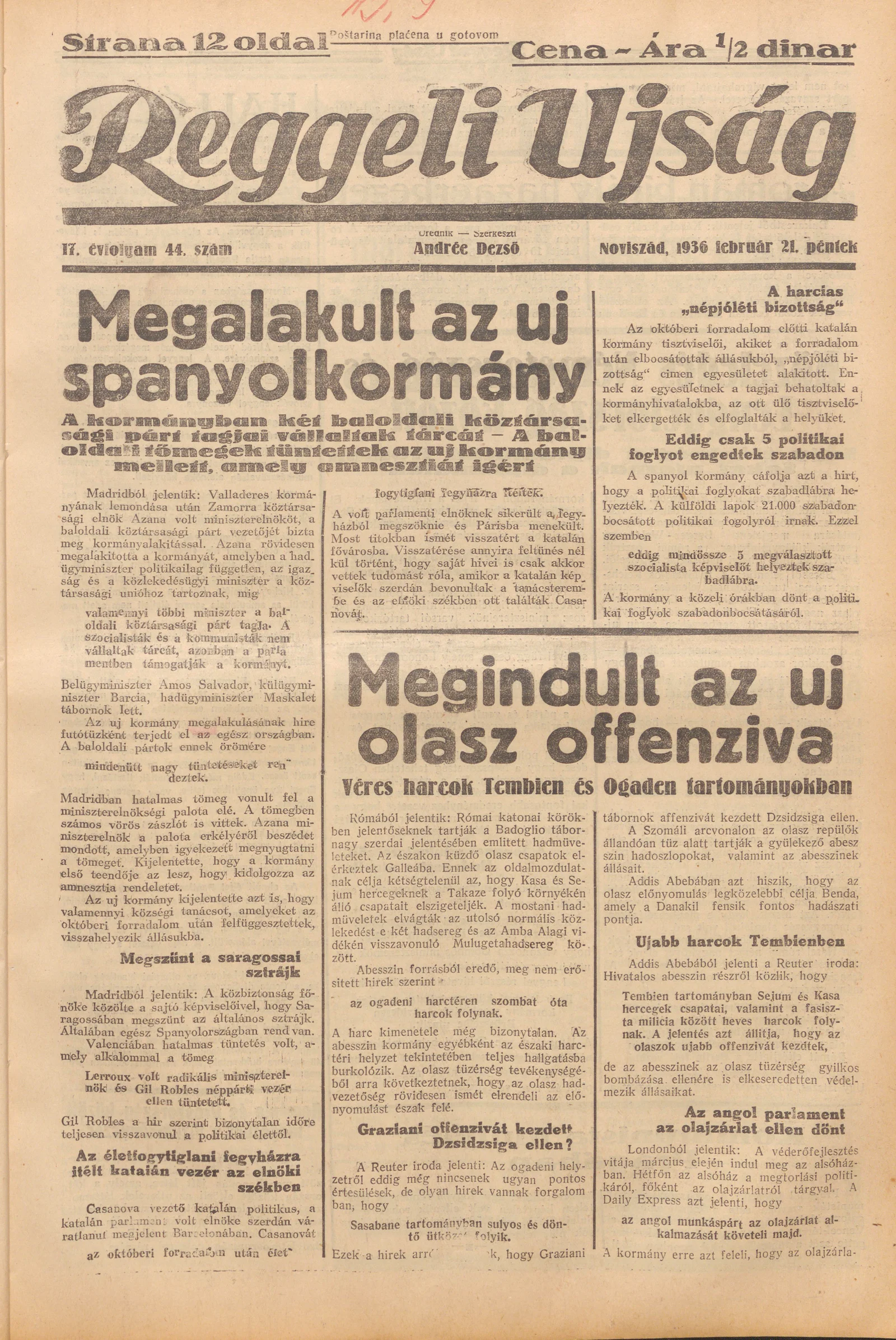 Reggeli Újság, 17. évf. 1936. február 21. 44. sz.