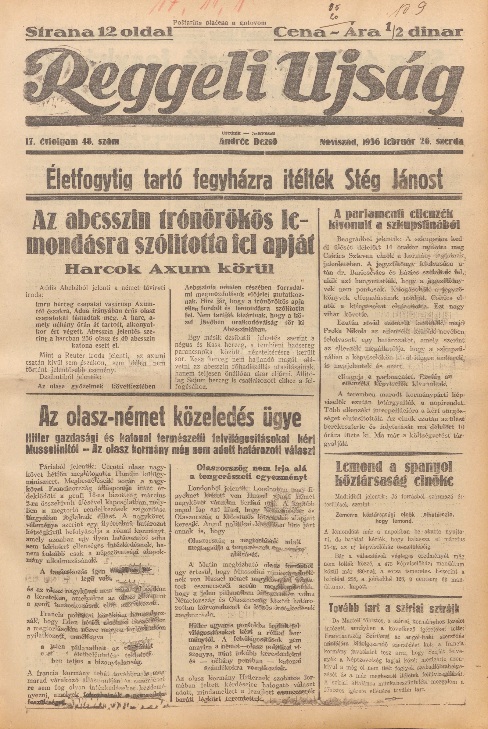Reggeli Újság, 17. évf. 1936. február 26. 48. sz.