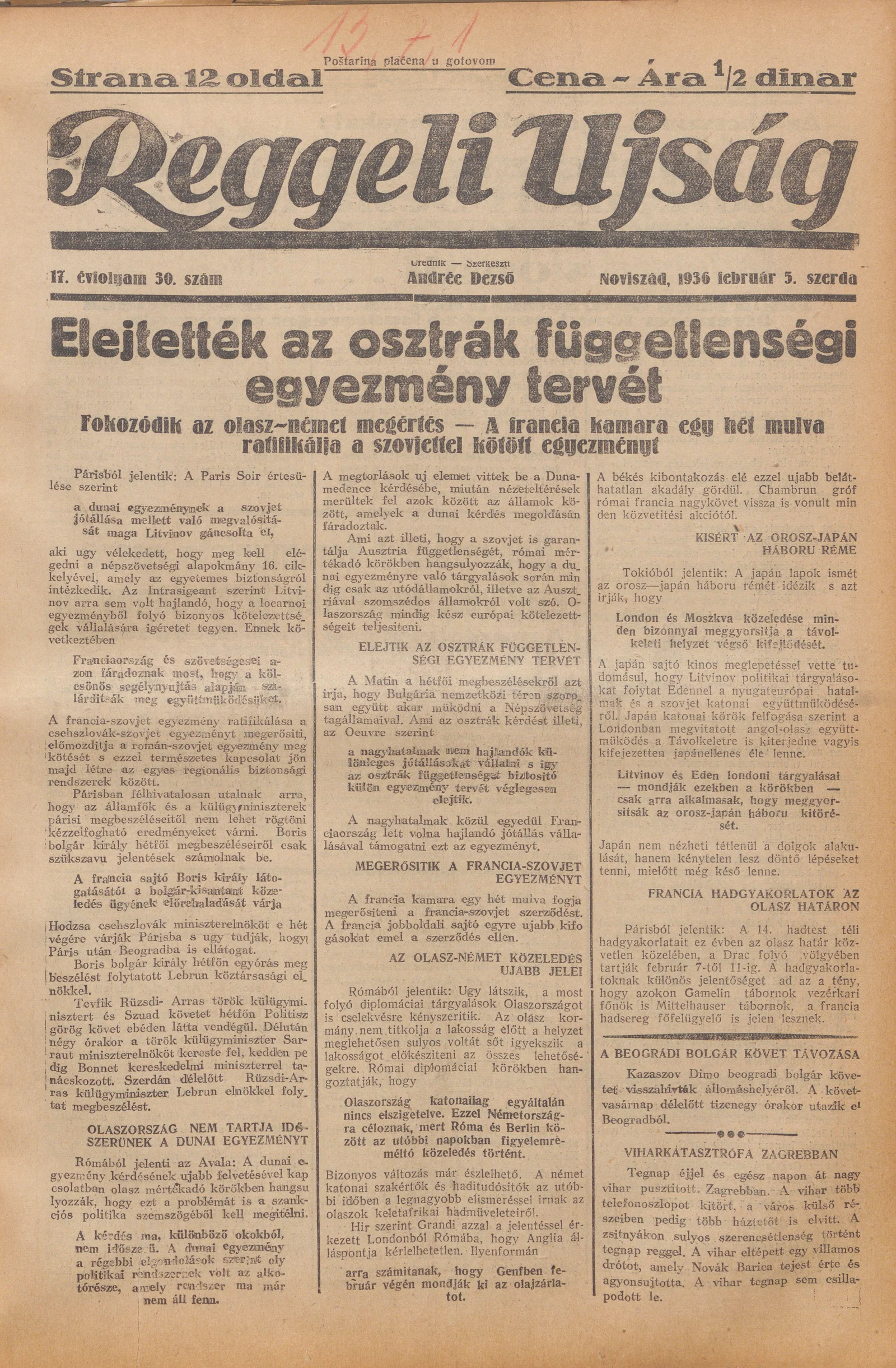 Reggeli Újság, 17. évf. 1936. február 5. 30. sz.