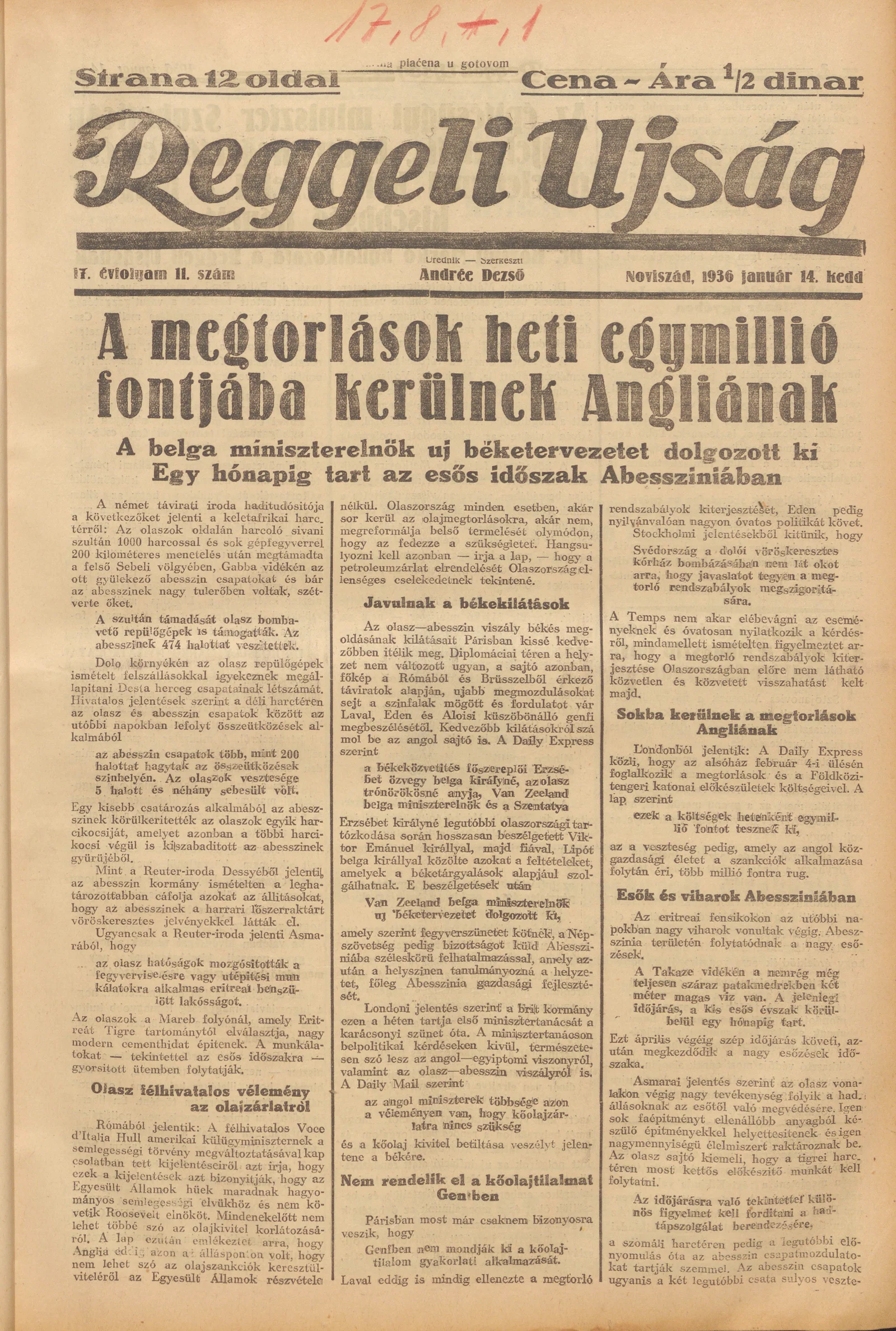 Reggeli Újság, 17. évf. 1936. január 14. 11. sz.
