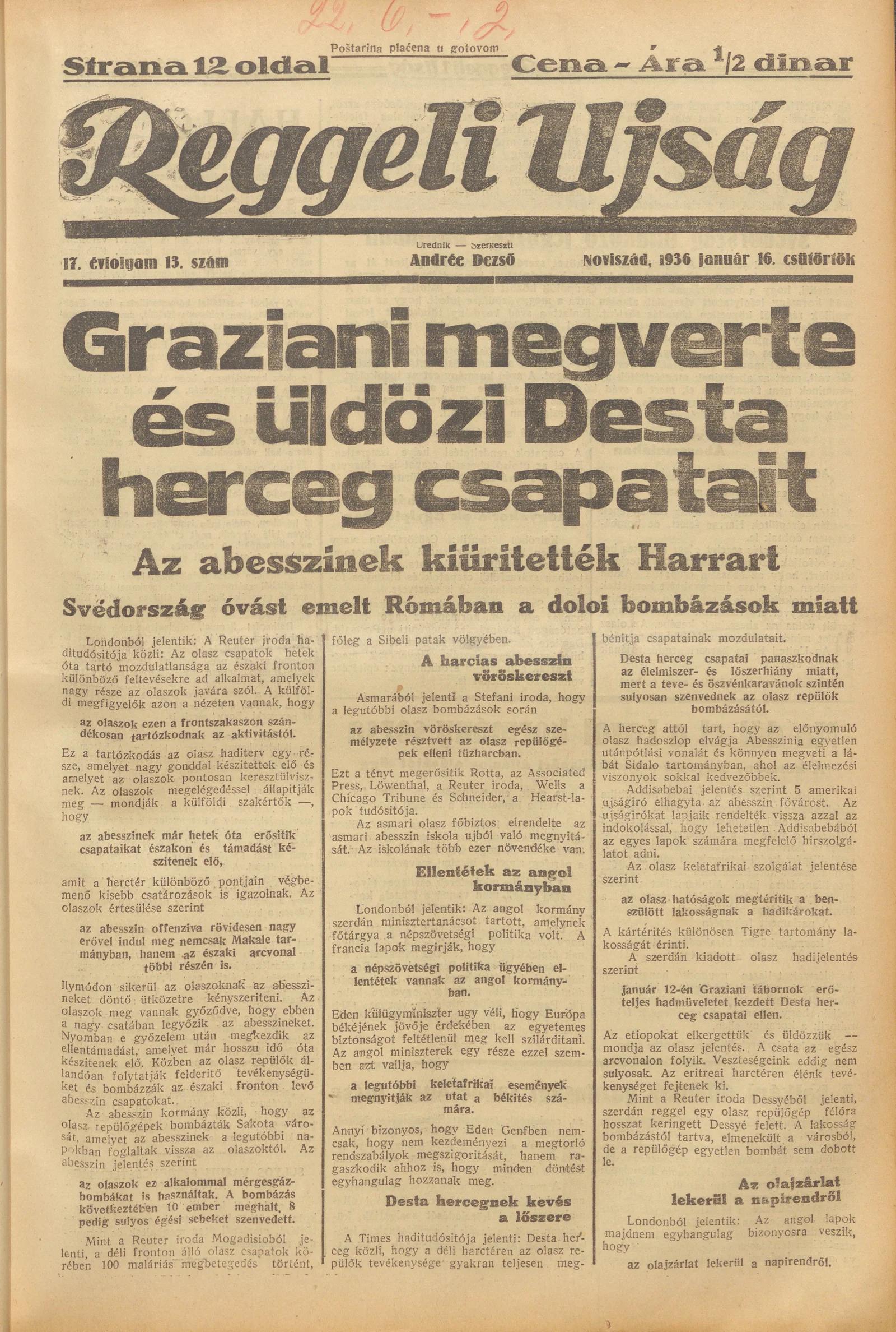 Reggeli Újság, 17. évf. 1936. január 16. 13. sz.