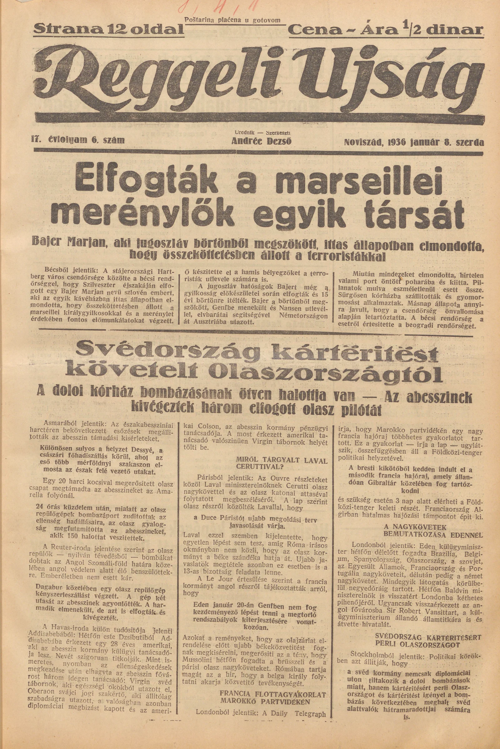 Reggeli Újság, 17. évf. 1936. január 8. 6. sz.