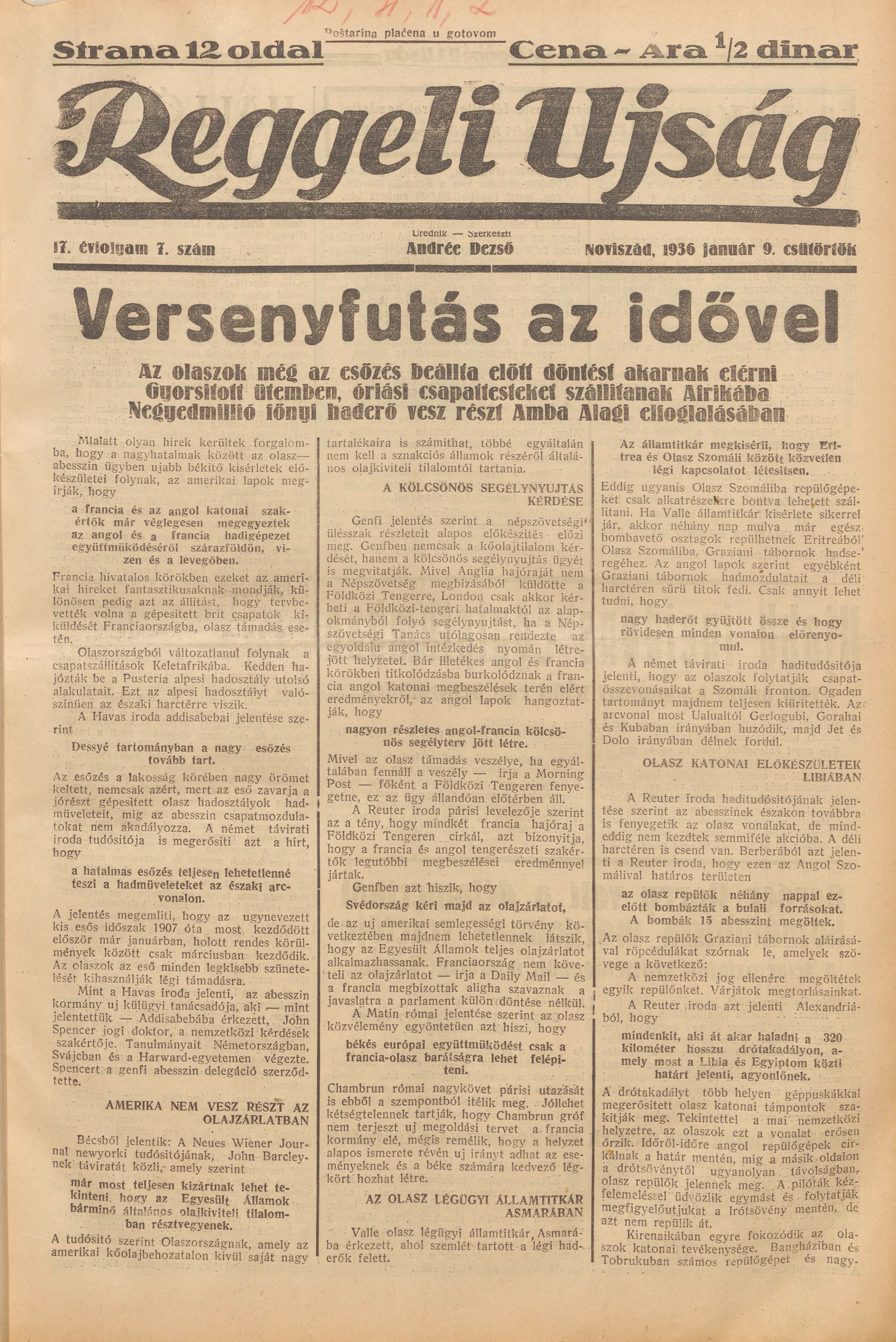 Reggeli Újság, 17. évf. 1936. január 9. 7. sz.