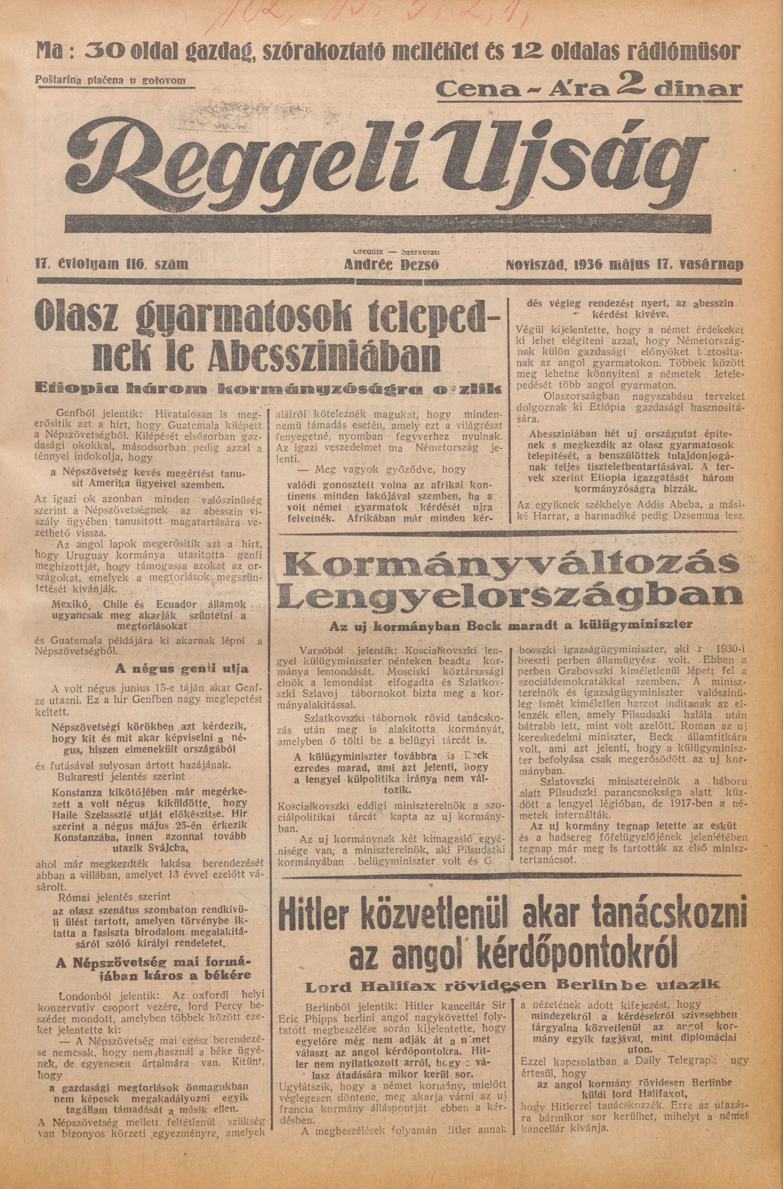 Reggeli Újság, 17. évf. 1936. május 17. 116. sz.
