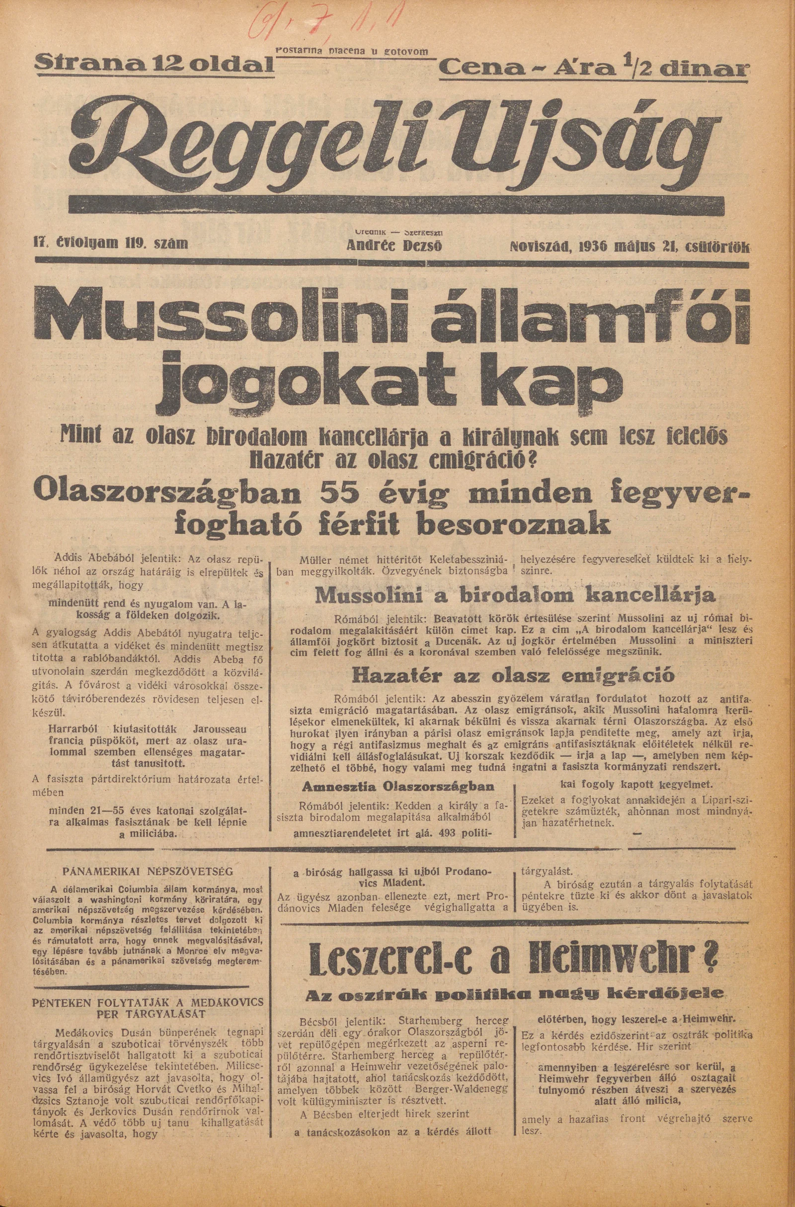 Reggeli Újság, 17. évf. 1936. május 21. 119. sz.