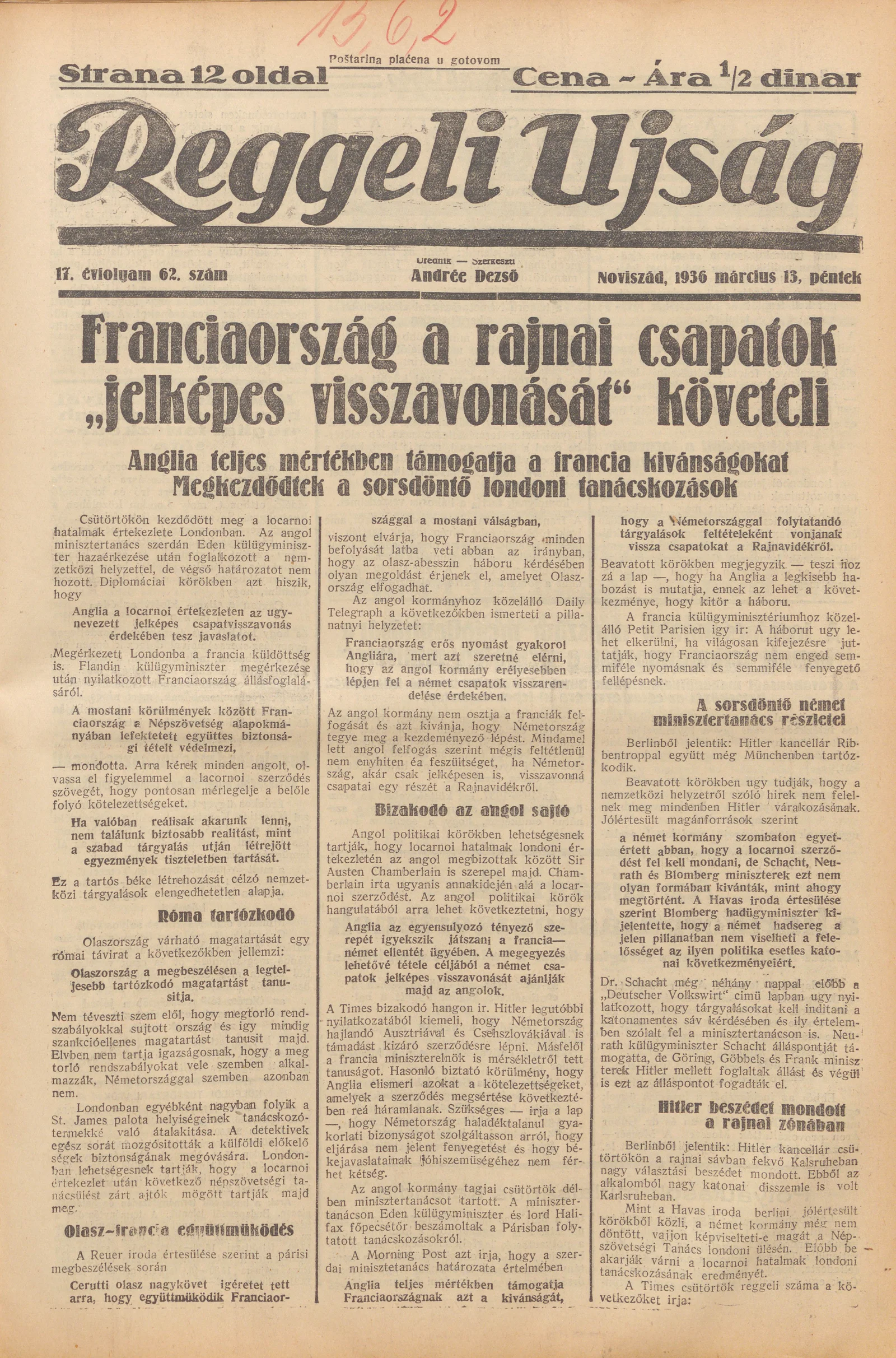 Reggeli Újság, 17. évf. 1936. március 13. 62. sz.