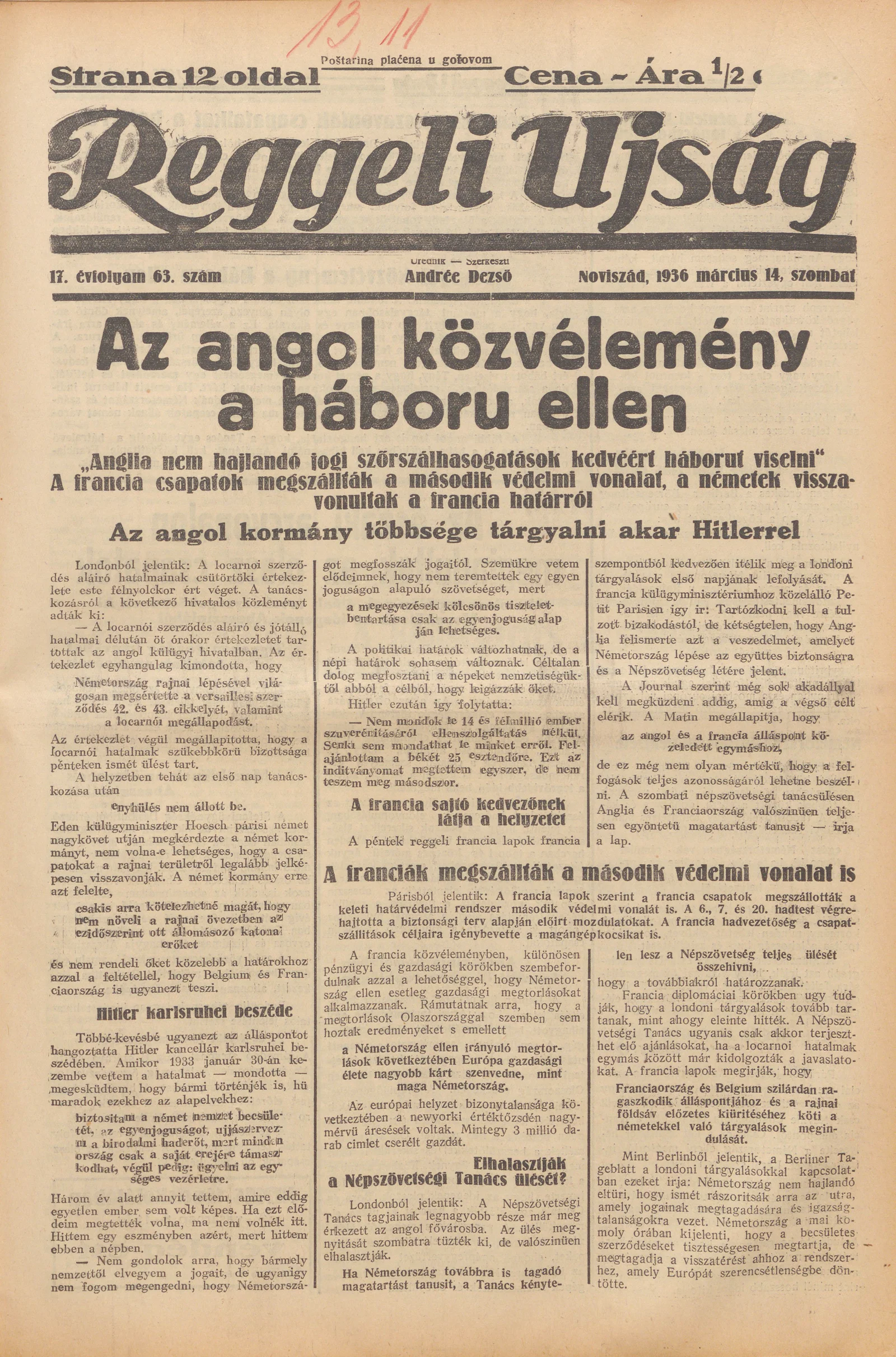 Reggeli Újság, 17. évf. 1936. március 14. 63. sz.