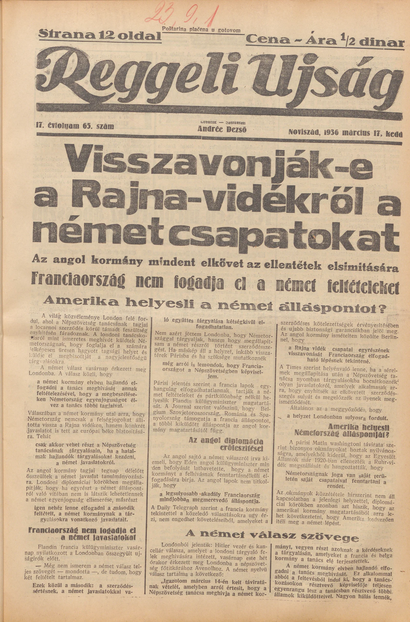 Reggeli Újság, 17. évf. 1936. március 17. 65. sz.