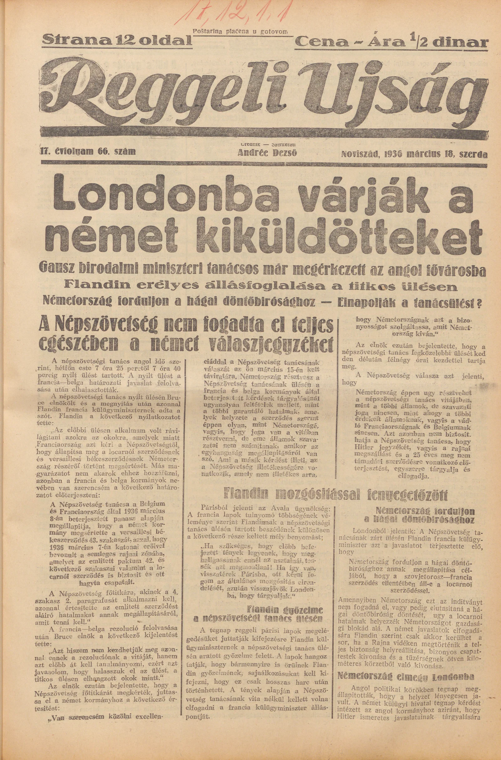 Reggeli Újság, 17. évf. 1936. március 18. 66. sz.