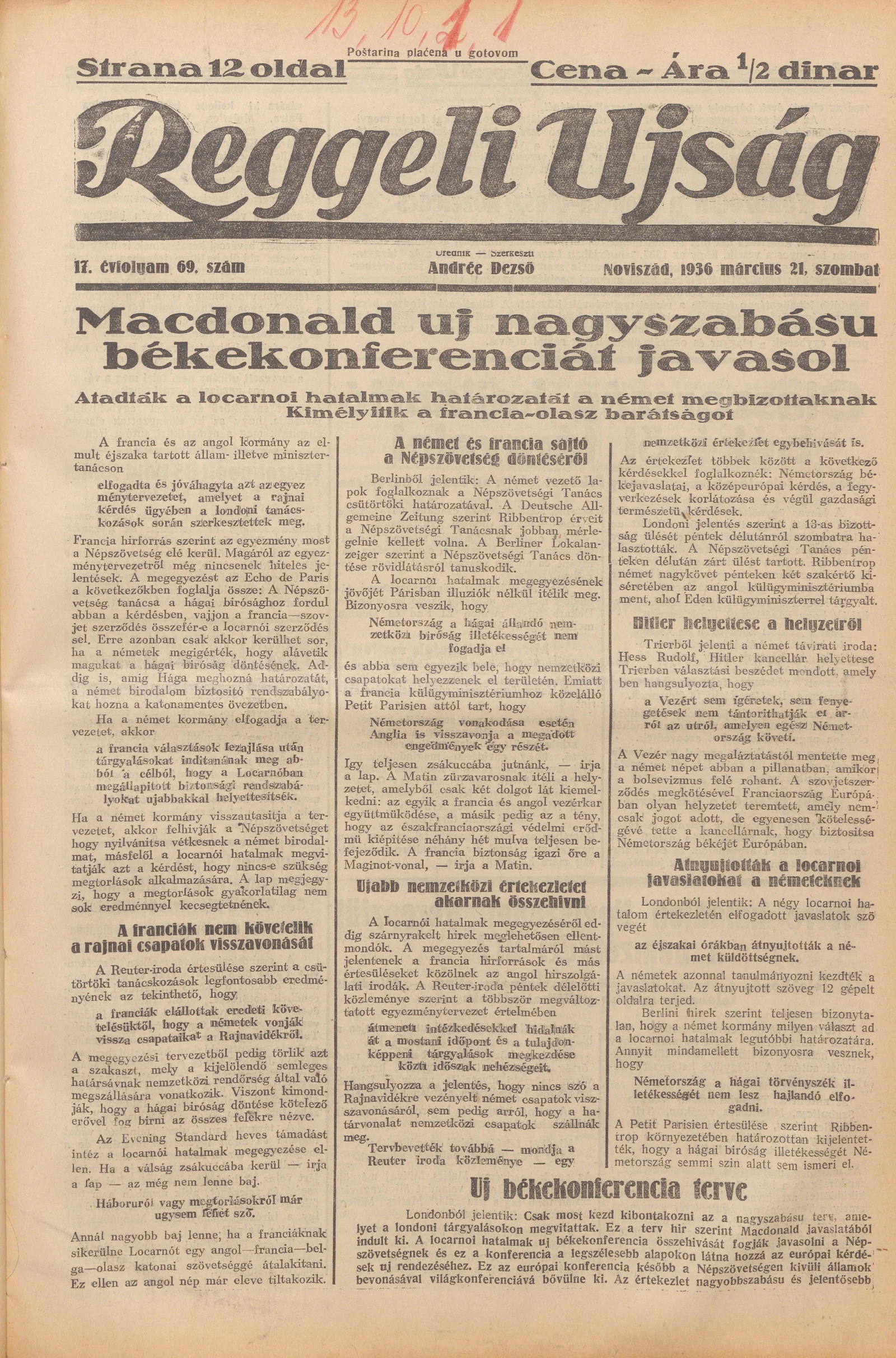 Reggeli Újság, 17. évf. 1936. március 21. 69. sz.