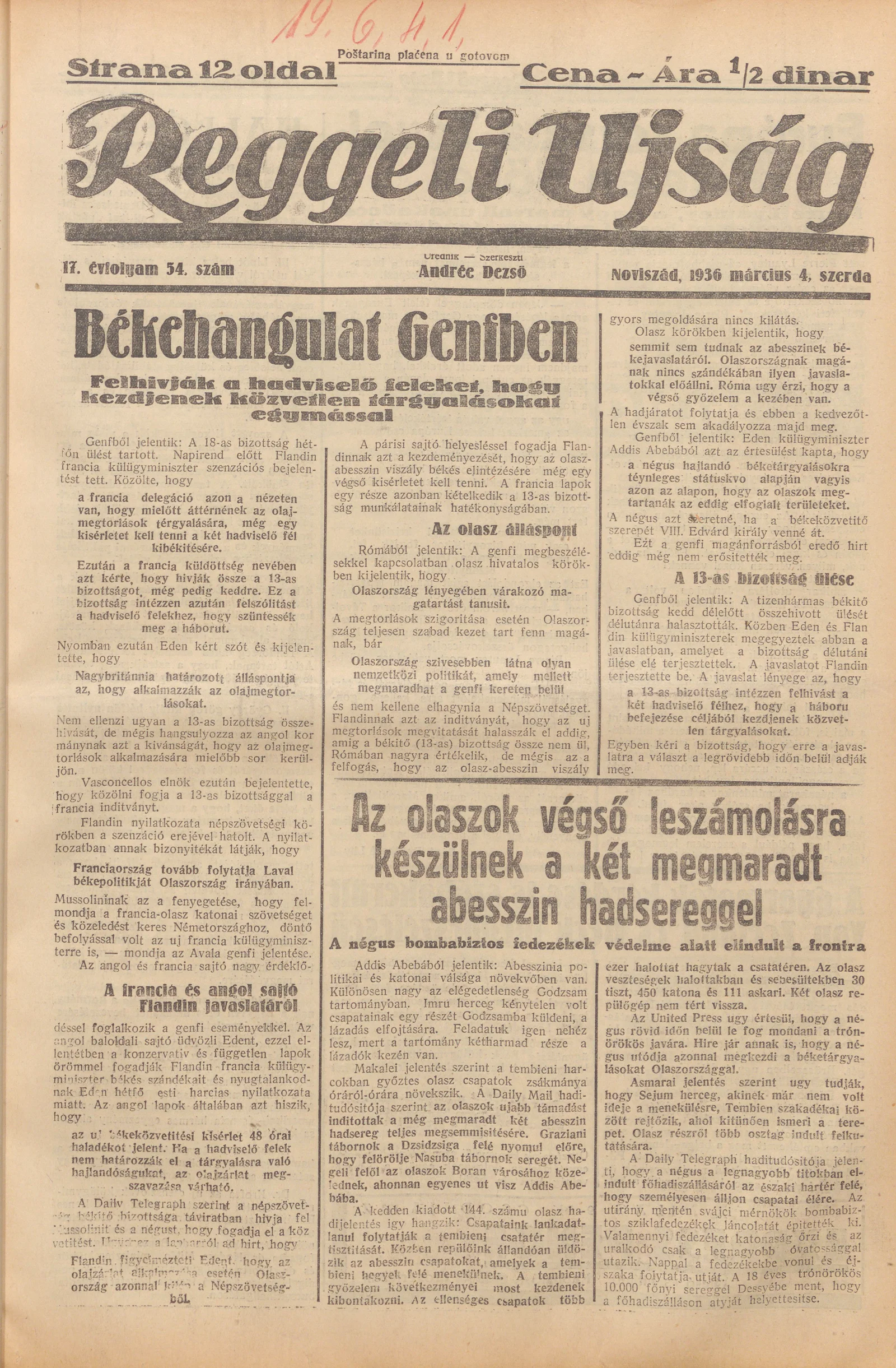 Reggeli Újság, 17. évf. 1936. március 4. 54. sz.