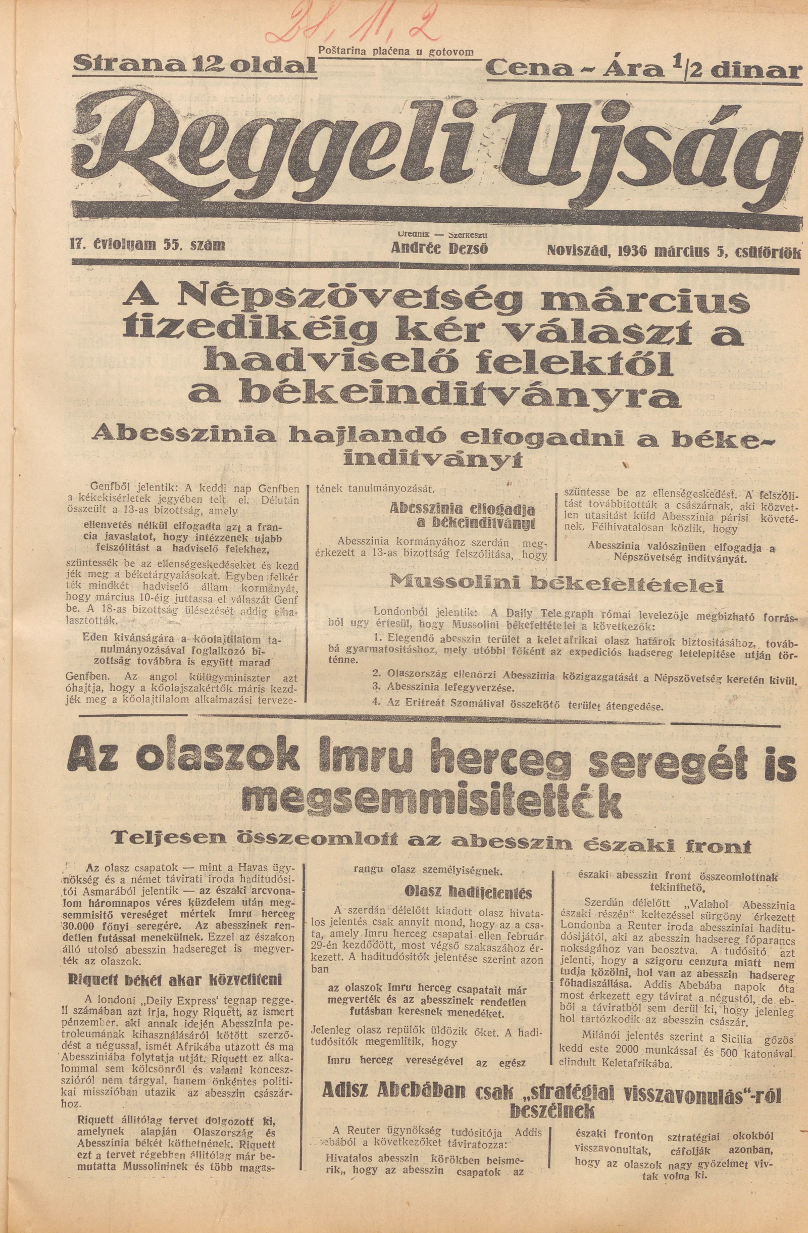 Reggeli Újság, 17. évf. 1936. március 5. 55. sz.