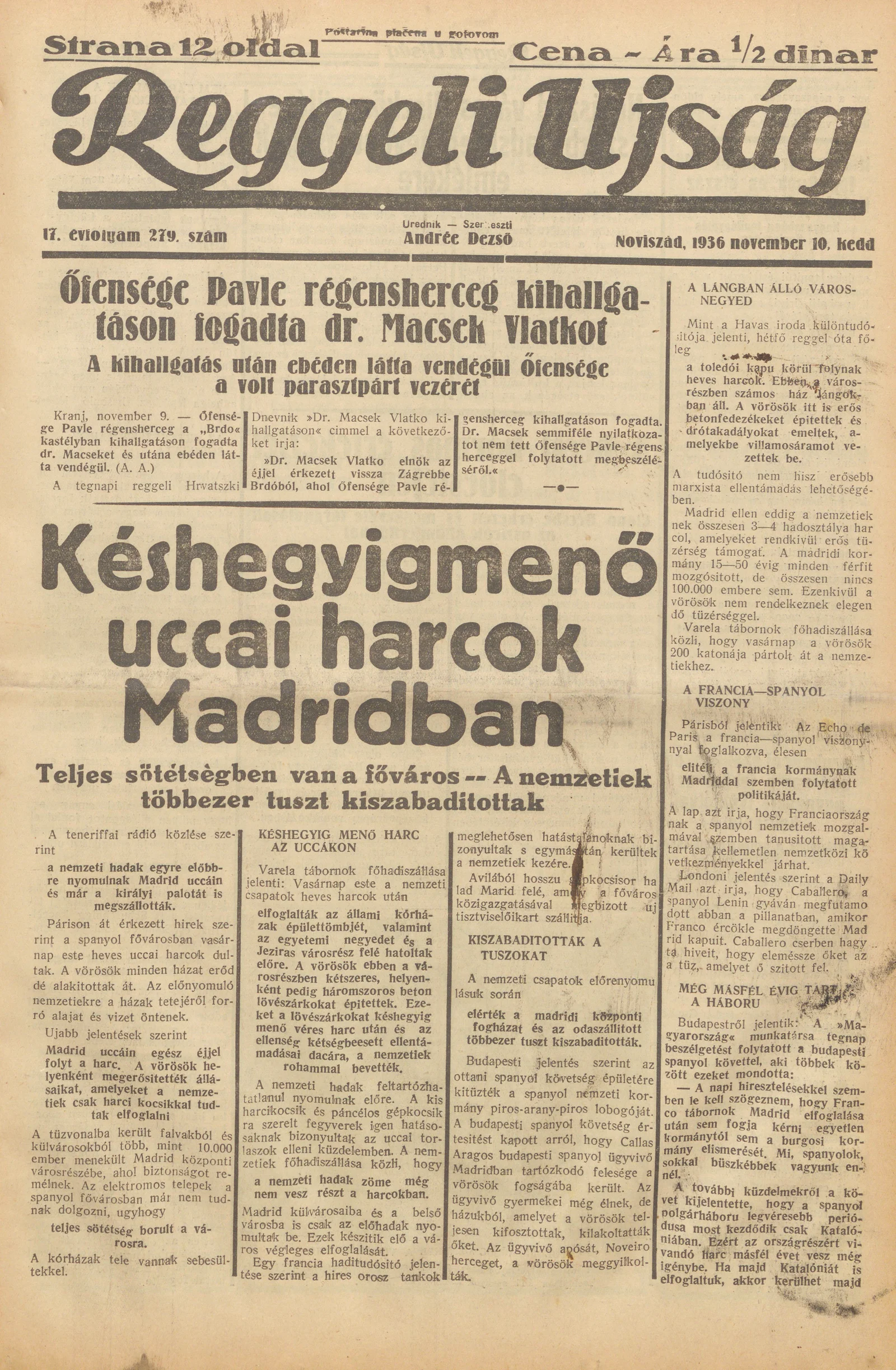 Reggeli Újság, 17. évf. 1936. november 10. 279. sz.
