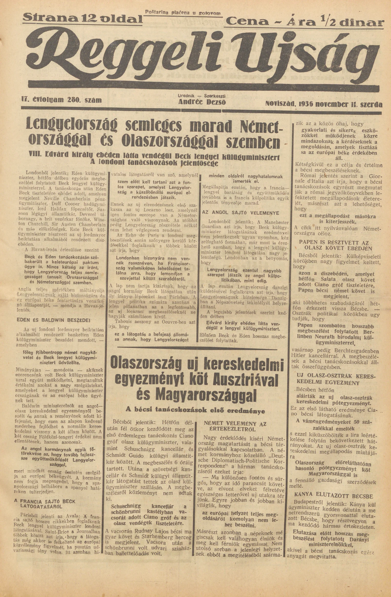 Reggeli Újság, 17. évf. 1936. november 11. 280. sz.