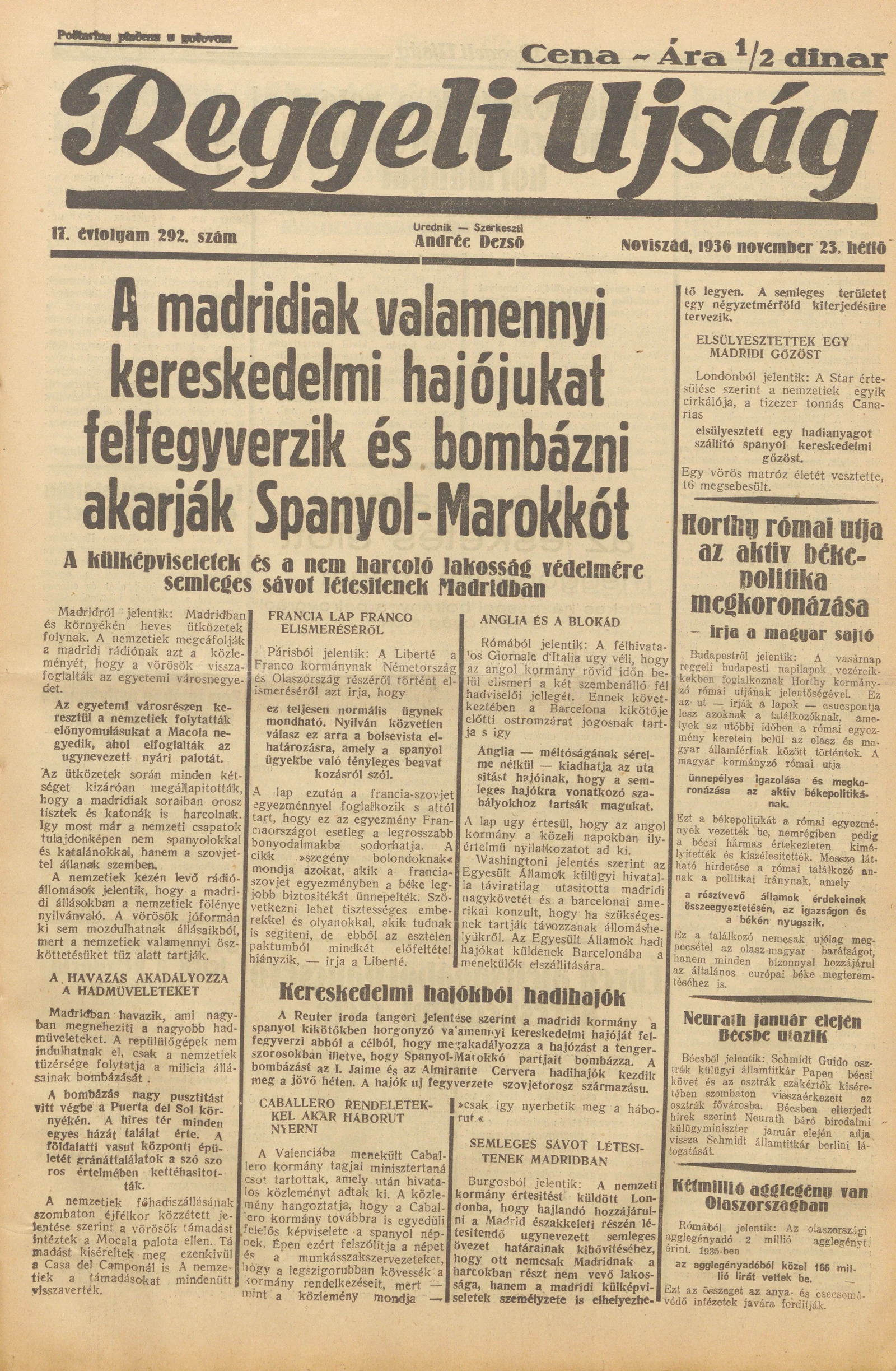 Reggeli Újság, 17. évf. 1936. november 23. 292. sz.