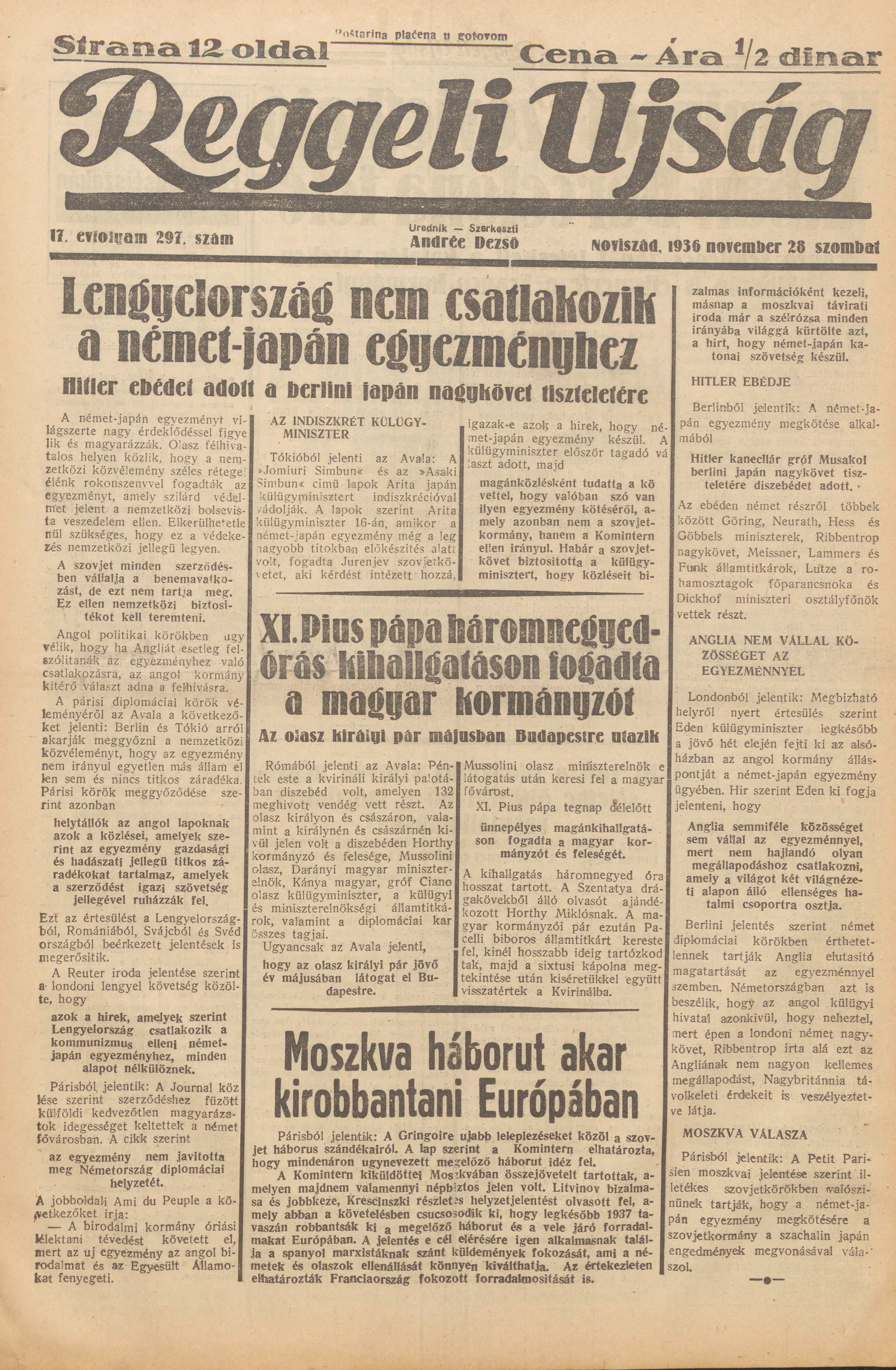 Reggeli Újság, 17. évf. 1936. november 28. 297. sz.
